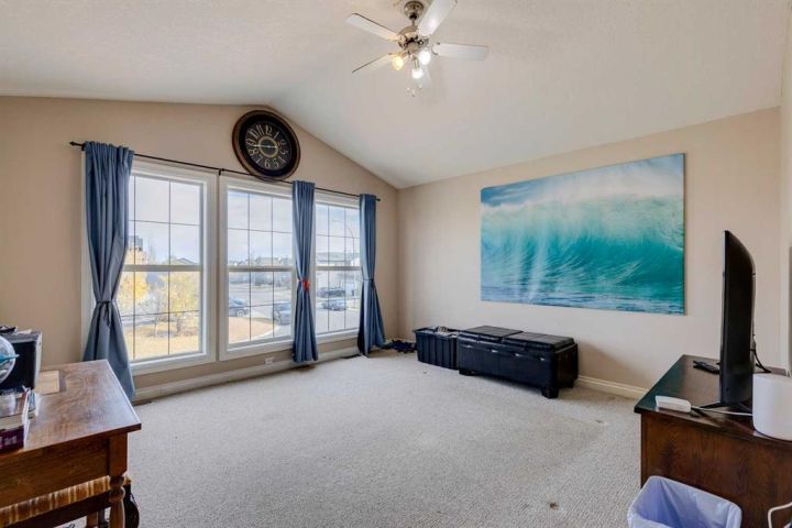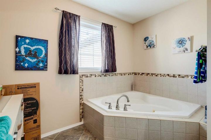 Beautiful family home in a sought-after Okotoks neighbourhood! Perfectly located on a quiet street close to schools, parks, and pathways, this home offers exceptional space and style. The open main floor features a cozy gas fireplace, a chef’s kitchen with full-height cabinets, large island, and a bright dining area with vaulted ceilings and access to the sunny backyard. Upstairs you’ll find a spacious bonus room and three generous bedrooms, including a primary suite with walk-in closet and relaxing ensuite. The basement adds even more living space with a rec room, fourth bedroom, and rough-in for a future bathroom. Move-in ready, and ideal for family living!