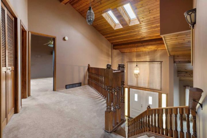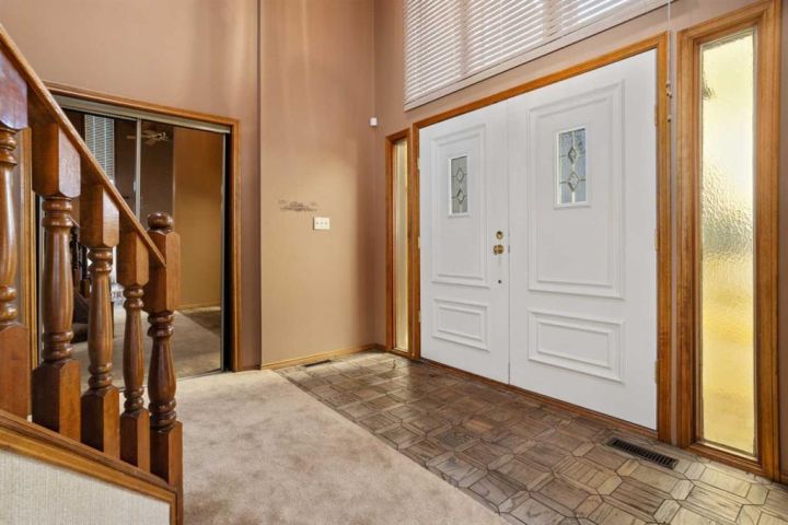 Discover a rare opportunity to own this well cared for and in solid original condition home nestled in an exclusive cul-de-sac in the highly sought-after Duggan Park neighbourhood. Perfectly positioned backing onto picturesque Duggan Pond, this property offers serene water views, abundant wildlife, and the privacy of a beautifully treed yard. From the moment you step through the impressive double front doors, you’re greeted by a soaring foyer and a striking open staircase that sets the tone for the rest of the home. The main floor is designed for both elegant entertaining and comfortable family living. Enjoy a spacious sunken living room and formal dining area, accented by a luxurious three-way gas fireplace and rich parquet hardwood flooring. The kitchen is a chef’s delight, featuring solid oak cabinetry, granite countertops, and newer appliances. A casual dining area overlooks a cozy nook with custom built-in cabinetry and bookcases—perfect for morning coffee or family gatherings. The main floor also includes a rare and inviting library or office space complete with a wood-burning fireplace, a two-piece powder room, and a spacious laundry room with extensive cabinetry and access to the deck and attached double garage. Up the semi-spiral staircase, you’ll find a bright and open landing, four generous bedrooms, and a large main bathroom. The primary suite is a true retreat, featuring a walk-through closet, private three-piece ensuite, and a tranquil sunroom where you can unwind and take in the views. The finished basement offers even more living space, including a large recreation area with a bar, a full bathroom with a luxury shower, and multiple storage rooms. Walk out basement to truly enjoy your backyard oasis. The home also features A/C, a garage floor drain, RV parking, a shed and more! Blending timeless design with a one-of-a-kind setting, this exceptional home provides everything your family could need—and more. Enjoy peaceful living among friendly neighbours in a quiet, established community, all while surrounded by nature and stunning pond views.