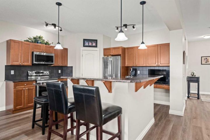 Beautifully Maintained, Air Conditioned, 4-Bedroom Home with Fully Finished Basement & Over 3,260 Sq. Ft. of Living Space! This stunning property showcases true pride of ownership throughout and offers the perfect blend of space, style, and comfort. From the moment you step inside, you’ll be impressed by the soaring open-to-above foyer, elegant LVP flooring, and the abundance of natural light that fills the home. The main floor features a spacious living room with a cozy gas fireplace and views of the backyard—ideal for relaxing or entertaining. The gorgeous kitchen boasts gleaming granite countertops, upgraded stainless steel appliances, a raised eating bar, and a convenient walkthrough pantry. Enjoy family dinners in the formal dining area or step out the patio doors to your large west-facing deck—perfect for BBQs or unwinding under the gazebo. A laundry/mudroom and half bath complete this level. Upstairs, you’ll find a massive bonus room with vaulted ceilings and stylish LVP flooring—great for family movie nights or a play area. The primary suite is a true retreat with stunning mountain views, a walk-in closet, and a luxurious renovated ensuite featuring heated tile floors, a tiled walk-in shower, dual-sink quartz vanity, and built-in storage. Two additional generous bedrooms and a 4-piece family bath complete the upper floor. The fully finished basement adds even more living space, featuring a wet bar with modern cabinetry and stainless steel fridge, a family room with a fireplace and custom built-ins, plus an office/den/craft room. The spacious fourth bedroom includes a walk-in closet and access to a 3-piece bath with an oversized tiled shower. Additional highlights include a heated 24’ x 22’ double attached garage, tasteful landscaping, and a stair lift (easily removable if not desired). This home truly has it all—beautifully finished, meticulously cared for, and ready for its next owners to move in and enjoy. Don’t miss the opportunity to make this exceptional home yours! View 3D/Multi Media/Virtual Tour!