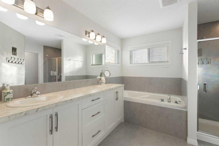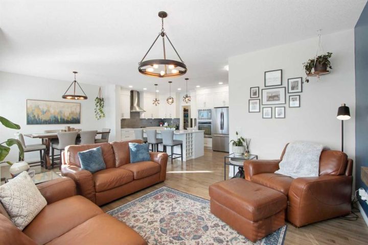 Welcome to your dream family home at 68 Thoroughbred Boulevard in Heartland, Cochrane. Bright, spacious, and beautifully maintained, this impressive two-story offers over 2,550 square feet of thoughtfully designed living space that is perfect for both family life and entertaining. As you step inside, you are greeted by a front office with double glass doors, ideal for working from home or creating a quiet study space. The open-concept main floor features a stylish living room with an electric fireplace and a chef’s kitchen with quartz countertops, stainless steel appliances, a touch-tap faucet, a garburator, and a nearly new fridge (2023). The large central island and walk-through pantry provide plenty of space for cooking and storage, while the adjoining dining area is perfect for family gatherings. Upstairs you will find one of the home’s biggest highlights: four spacious bedrooms, all on the same level. The vaulted bonus room includes a built-in desk, creating a versatile space for work or relaxation. The luxurious primary suite features another vaulted ceiling, walk-in closet, and a beautiful five-piece ensuite with dual sinks, a soaking tub, and a glass shower. A convenient upstairs laundry room and additional full bathroom complete the upper level. This backyard is so inviting, with a new privacy wall on the deck, a brand-new hot tub (2025), and columnar aspen trees that will fill in over time to create an even more secluded outdoor retreat. The exposed aggregate driveway and double attached garage(19`10" x 21`11") add both beauty and practicality to the property. Additional features include hot water on demand (3 years old), a two-zoned high-efficiency furnace with air conditioning, and basement bathroom rough-ins ready for future development. Located in the welcoming community of Heartland, you will love the access to parks, schools, and Cochrane’s scenic walking paths and local shops.