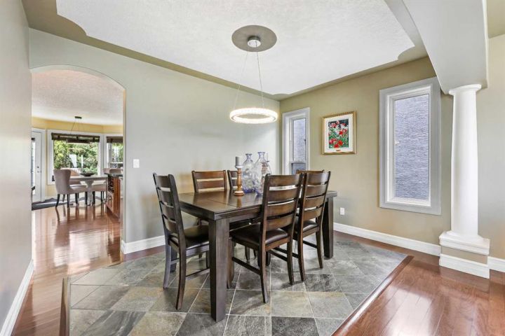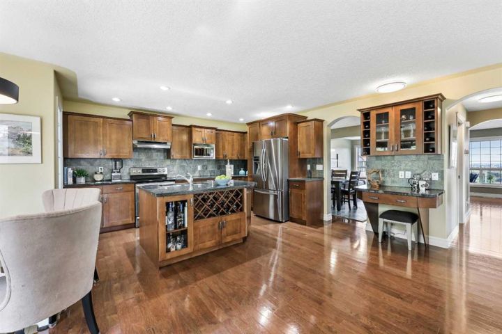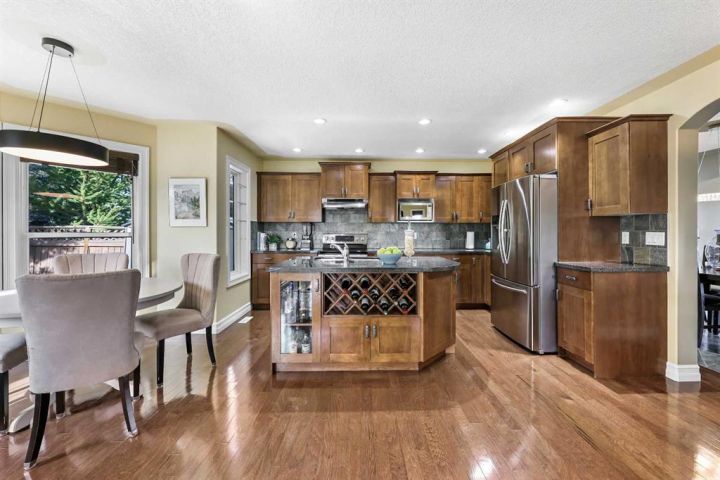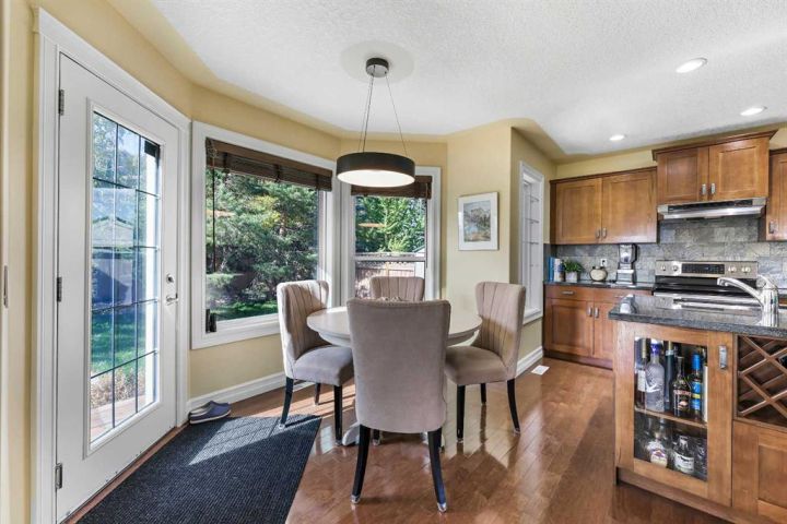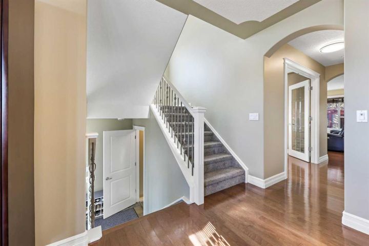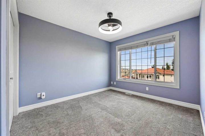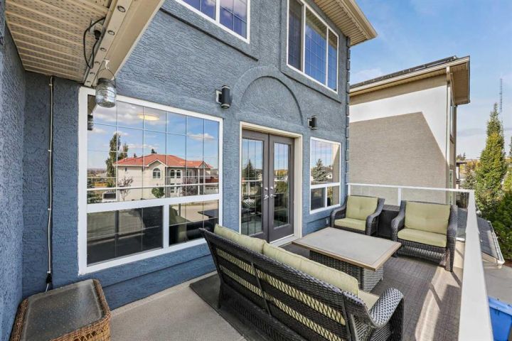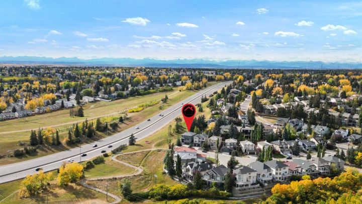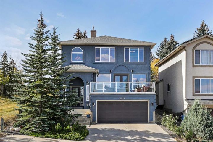 Tucked at the end of a cul-de-sac in Coach Hill, this beautifully maintained two-storey backs directly onto green space and serves up wide-open views of Calgary’s skyline. Inside, you’ll find over 3,100 square feet of thoughtfully designed living space—completely move-in ready and filled with natural light. The main floor is open and airy with oversized windows, a bright front living room with French doors opening directly to a large front balcony, where you’ll actually want to spend time—coffee, wine, and Stampede fireworks… all included. The kitchen blends warmth and function with solid wood cabinetry, built in pantry, granite countertops, stainless appliances, and a layout that connects easily to the breakfast nook, dining, and family room. Whether you’re hosting or unwinding, this space works. Upstairs, the primary suite takes advantage of the naturally private surroundings, and includes a large walk-in closet plus a relaxing 4pc ensuite with a deep soaker tub. Two more bedrooms, an upgraded 3 pc bathroom with a huge walk-in shower, and a sunny flex space, with views, give everyone room to spread out. The finished lower level checks all the boxes for hangouts, hobbies, or guest space—with a fireplace, full 4pc bathroom, storage, plenty of space to add a fourth bedroom if needed. Out back, the yard is private, fully landscaped with new sod and mature trees. The double garage is EV-ready, and there’s programmable Gemstone lighting on the exterior. Recent upgrades include a new roof, A/C, high-efficiency furnace, modern lighting, newer carpet, and full interior/exterior paint—almost everything’s been done for you. Just minutes to Westside Rec Centre, COP, schools, the LRT, downtown, and the mountains. Quiet, connected, and completely dialed in—this home is one of Coach Hill’s best values for commuters and regular mountain visitors