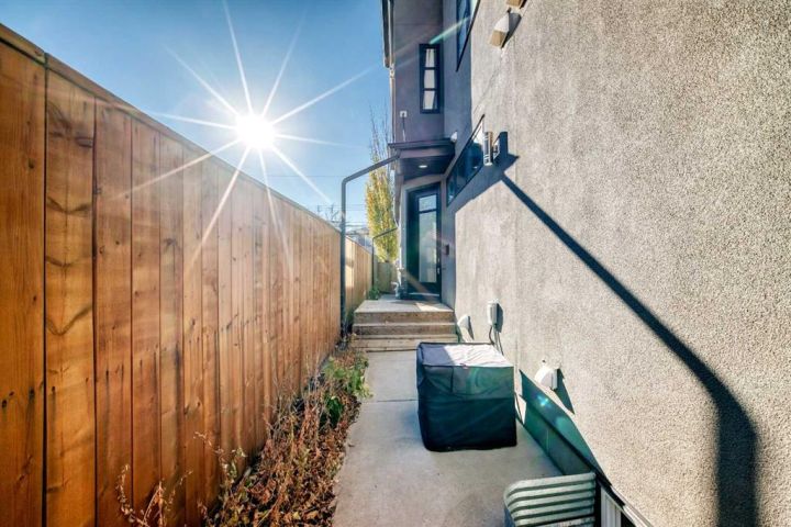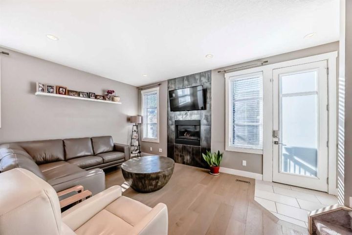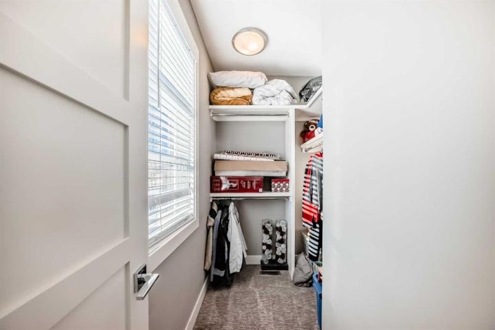 Incredible 3 storey corner townhouse in Winston Hts. If you are looking for a quality built home with loads of sq ft this is the one for you. The main floor is wide open with 9 foot ceilings, recessed lighting, gleaming laminate flooring and loads of oversized windows. The kitchen is wide open to the living area and has full height kitchen cabinets with builtin lighting, upgraded backsplash lit up with under mounting lights, beautiful white quartz countertops throughout & upgrades SS appliances. There is a huge centre island with breakfast bar, dual undermount sinks, extra storage cabinets plus the dishwasher. There is also a large corner walkin pantry with tons of storage. Off the kitchen is a good sized dining area which overlooks the living room. The living room has a central gas fireplace with tiled surround and a mounted TV. There is a walkout to a back deck/BBQ area plus access to your parking space in the detached garage. This unit uses the far right side (when looking from the alley) parking spot. The 2nd level boasts two massive bedrooms each with their own oversized walkin closets. Between them you will find a full 4 pce main bathroom with tiled floors, his n her sinks sharing a huge vanity with extra cabinets and drawers. There is a water closet that has the tub/shower plus the toilet as well. The laundry is on then2nd level as well and has full sized washer/dryer with builtin cabinets. You will love the size of the bedrooms, the walkin closets and the 8 foot high doors throughout. The 3rd level is a huge Primary Bedroom with recessed lights, knockdown ceilings, a ceiling fan and a walkout to a large balcony that overlooks the City~ beautiful unobstructed views! The balcony has glass railing & loads of space for your patio furniture. The ensuite is luxurious with deep soaker tub, oversized stand up shower, tiled floors, his n her vanities plus a massive walkin closet with builtin custom made shelving. The fully finished basement had a good sized rec room with recessed lights, knock down ceilings, laminate floors & two windows. There is a storage room which has the freezer, a handy 2 pce bathroom and the massive 4th bedroom! The utility room has a high efficient furnace, Central AC, Builtin VacuFlo and an oversized Hot Water tank.