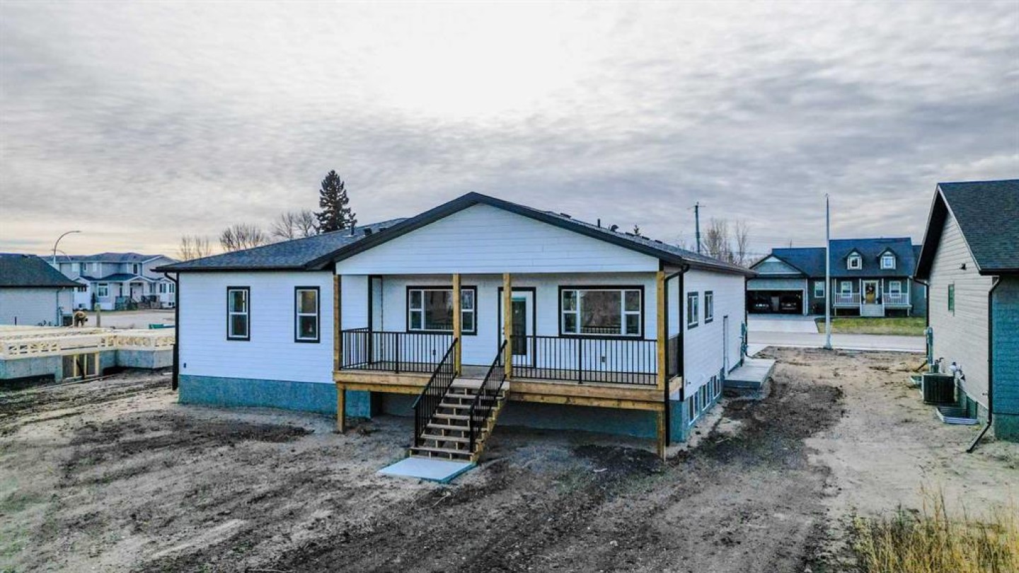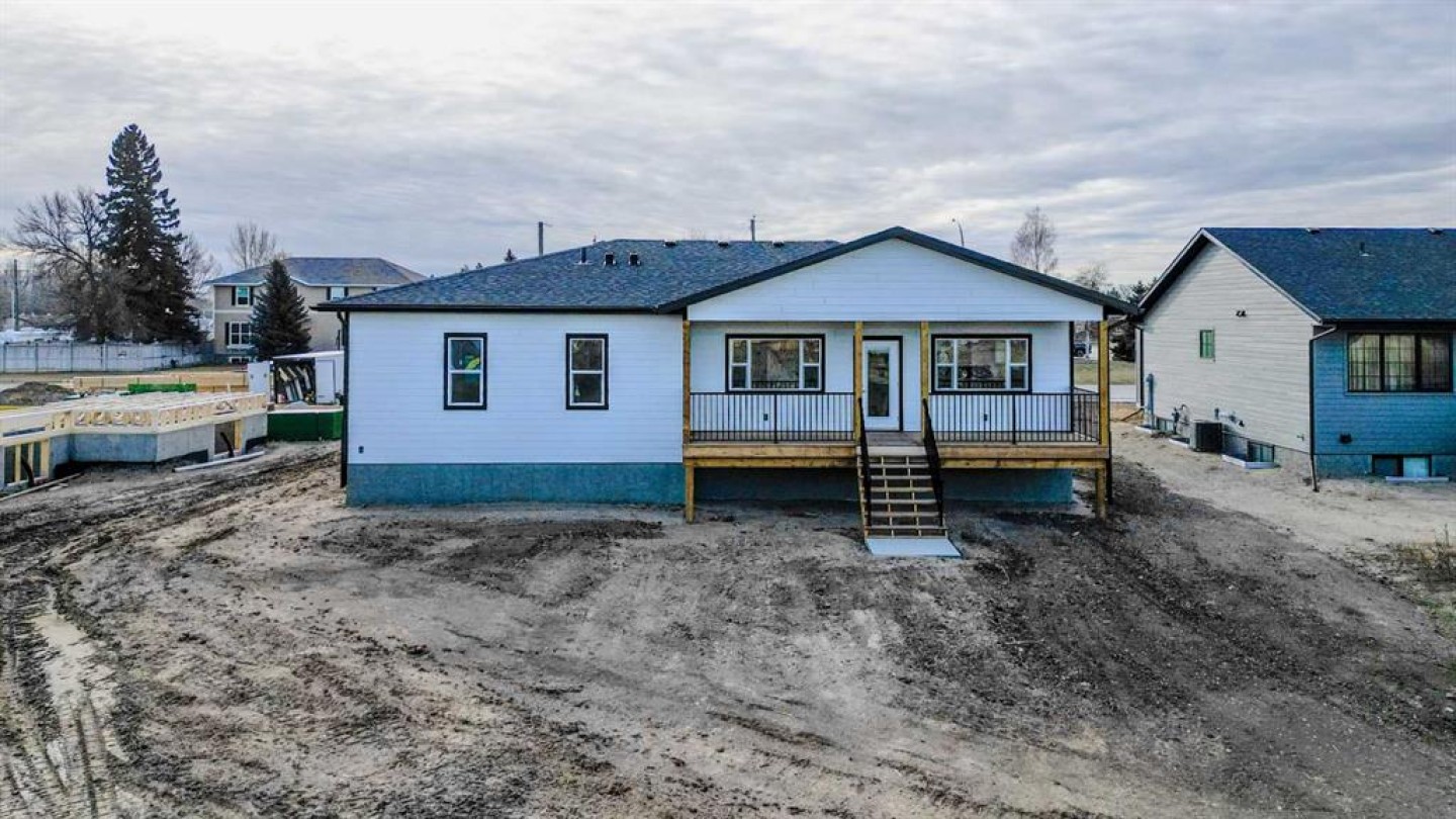 Welcome to this brand new build in the quaint and friendly town of Magrath just 20 minutes from Lethbridge! This beautiful home offers five bedrooms and three full bathrooms, giving families plenty of space to grow and enjoy. It features central air-conditioning, a bright main floor living room with a cozy electric fireplace, and a stylish kitchen with all new stainless steel appliances! The spacious dining area opens onto a large back deck that overlooks the nearly quarter-acre lot—perfect for kids to play, summer barbecues, or relaxing in the sun. With three bedrooms and the laundry room conveniently located on the main floor, this home is perfectly set up for young families! The primary suite includes a walk-in closet and a beautiful ensuite with a double vanity and walk-in shower. Downstairs, you’ll find a large family room ideal for movie nights or gatherings (a massive blank wall is calling for you to set up your projector!), as well as two more large bedrooms, and the third full bathroom. A double attached garage providing plenty of storage and convenience rounds out this spectacular home! Modern colour choices and finishes throughout give the home a clean, welcoming feel. Located in a fantastic neighbourhood in Magrath, this home has everything you could ask for—it’s just waiting for its new owners to move in and make it their own! Call your REALTOR® and book your showing today!