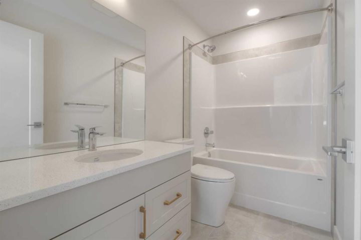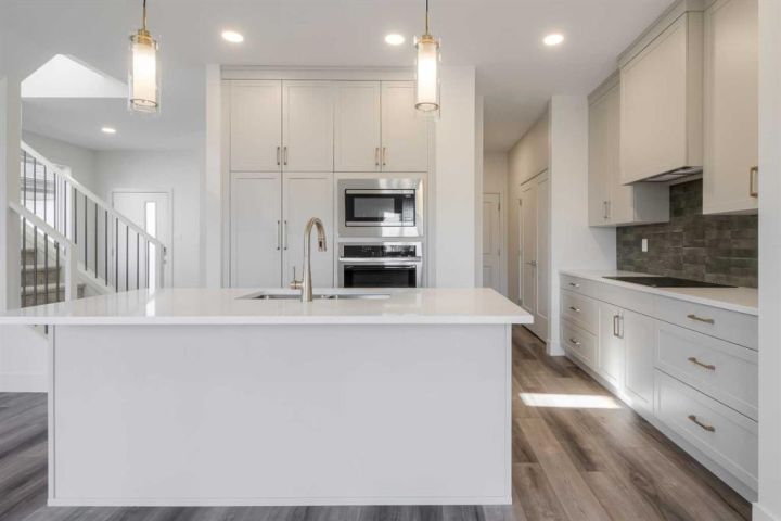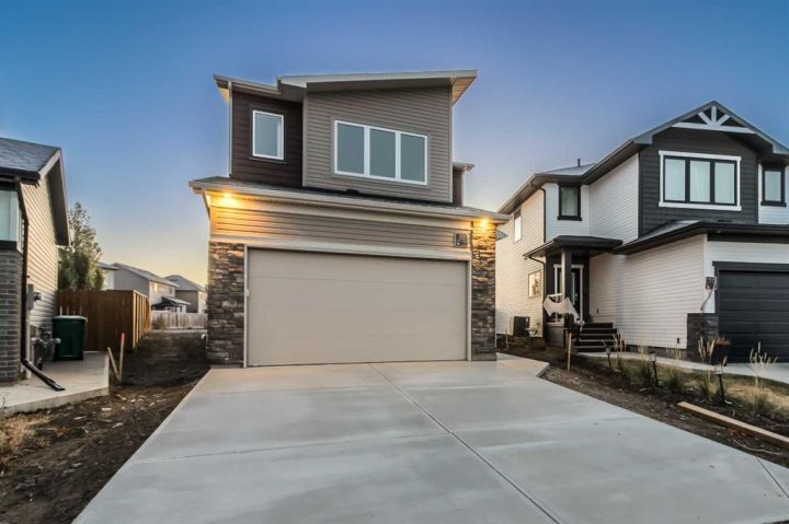 Welcome to the Westhill by Stranville Living Master Builder, an award-winning two-storey home model located in the dynamic west Lethbridge community of Copperwood. At just under 1,800 square feet of developed area, this 3 bedroom, 2.5 bath home is terrifically finished in selections made by the builder's skilled interior design team. The main floor includes a beautifully appointed kitchen in an upgraded MDF finish by Adora Cabinets, fully tiled backsplash, and quartz countertops for both the base cabinets and island with extended eating bar. Stranville Living's top tier appliance package includes a seamlessly integrated paneled Fisher & Paykel fridge, paneled dishwasher, induction cooktop, built-in hood fan, and a stainless steel wall oven and microwave combo unit. A sleek built-in electric fireplace with wood mantle accents the main floor living room. An 8' sliding glass door exits onto the future deck sitting adjacent to a massive rear window with views of the large rear yard. Upstairs, a large primary bedroom includes a tasteful double sink vanity and a sizeable tiled shower with glass door. Two more ample bedrooms, a 4-piece bathroom, and laundry closet also grace this upper level, but it is the 163 square foot media room that makes it complete. Don't forget about the high efficient mechanical equipment, Low E windows, and spray foam in the rim joists that help keep your heating and cooling costs in check. All the beautiful finishes of the home aside, it is the incredible size of the lot that sets this home apart from every other home on the street. Come by and see what I mean, you'll be happy you did. Pictures contain virtual staging. There's nothing like NEW!