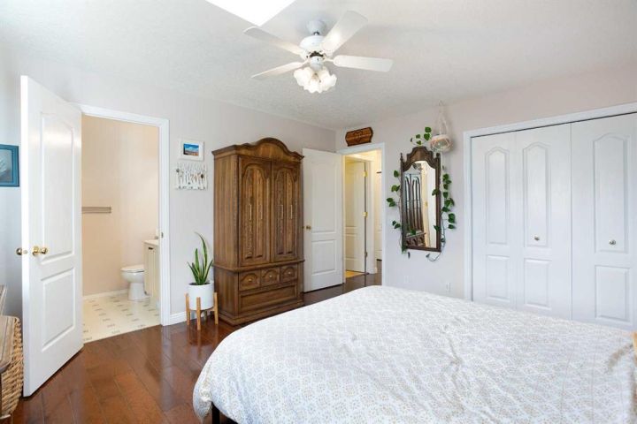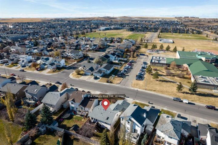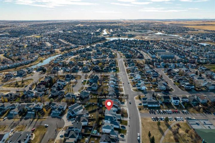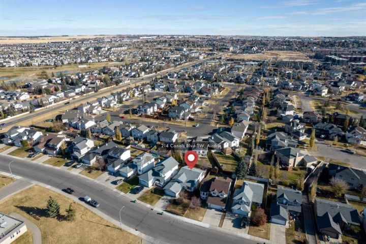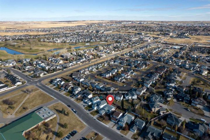 This executive Bi-Level is the definitive choice, delivering over 2,640 square feet of polished, high-end living in Airdrie's most desirable community, The Canals. Step inside the tiled entry and be greeted by spectacular vaulted ceilings that immediately amplify the space, while gleaming hardwood floors and a tranquil palette wrap you in luxury. The magnificent living room invites you to unwind by the cozy fireplace on a chilly evening. The culinary heart of the home is a fresh, bright kitchen that practically glows with natural light, thanks to custom millwork framing the windows. You'll love the airy dining area overlooking the yard, with seamless access to a large, sunny deck. Rounding out the main floor is a flexible den, ready to become your sun-drenched home office or formal dining space. This home boasts three substantial bedrooms on the upper level. Escape to the expansive primary suite, a true sanctuary featuring a 3-piece ensuite with a stand-alone shower and a cheerful skylight. A pristine 4-piece main bathroom caters to the two additional, well-proportioned bedrooms. Descend to the lower level and prepare to be captivated by the architectural sophistication of the coffered ceiling and new carpeting. This massive space is built for entertainment, featuring a huge family room with a Gas fireplace and is professionally wired with surround sound. This level also offers a fourth substantial bedroom, a massive storage room, a large laundry room, and a 3-piece bathroom, adding to the charm of this stunning home. Practicality meets convenience with an insulated double attached garage and a beautifully manicured yard featuring an essential underground sprinkler system. Location is everything! Enjoy the ultimate convenience of this prime central hub, boasting easy walking distance to multiple schools, playgrounds, and parks. With fantastic access routes in and out of the city, your commute just got easier. This is a rare opportunity to own a beautifully maintained home in an exceptional location. Be sure to check out the iGuide. Don't wait - book your private showing today!
