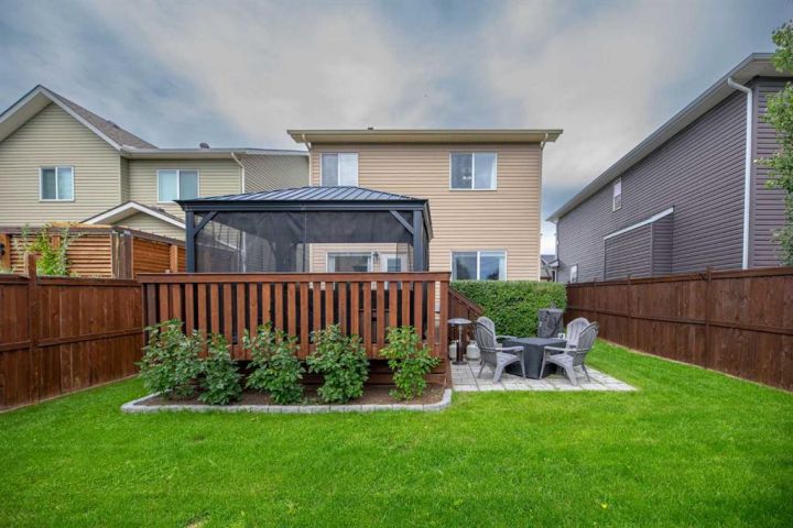 Welcome to Kings Heights, where this updated two-storey pairs everyday function with rare backyard privacy. With no homes behind and a south-facing yard, the main living spaces are bright from morning to evening. Outdoors is set for easy hosting: a landscaped yard, oversized deck, and screened gazebo create multiple zones for dining, relaxing, and play. Inside, style and comfort come with hardwood flooring, refreshed lighting, and thoughtful details throughout, plus peace of mind from new A/C (2023) and a new furnace (2024). The kitchen delivers form and function with ceiling-height cabinets, granite counters, a gas range, and a generous island for prep and gatherings. Upstairs keeps life organized: walk-in closets in every bedroom and an updated laundry room with added storage. The basement is framed and wired with permits, giving you a head start on a media room, gym, or additional living area. Location seals the deal. You’re moments to parks, walking paths, Kingsview Market, and a full range of schools, preschool, and daycare. Move-in ready, well cared for, and built to grow with you. This is one to see.