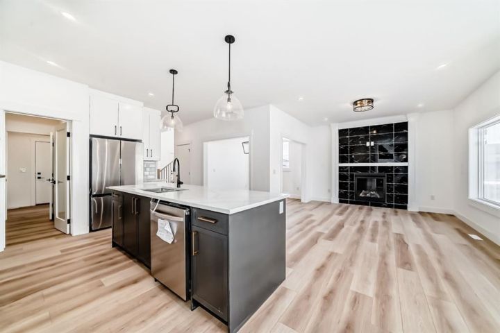 This stunning property is currently under construction, designed with modern finishes and exceptional craftsmanship throughout. The main floor offers a bright open-concept layout with a spacious living room, cozy gas fireplace, and a gourmet kitchen featuring a large island, premium cabinetry, and a walk-in pantry. A versatile flex room at the front is perfect for a home office or formal sitting area. Upstairs features 3 generous bedrooms, including two master suites — ideal for extended family or guests — along with a spacious loft area and a convenient laundry room on the upper floor. The primary suite boasts a luxurious ensuite with dual vanities, a soaker tub, and a walk-in closet. The walkout unfinished basement offers endless potential for future development. Enjoy peaceful views as the home backs onto a beautiful pond, providing privacy and a natural backdrop. Additional highlights include a triple garage and a rear deck. Located close to all amenities in Carstairs, including parks and playgrounds, this home perfectly combines luxury, comfort, and family-friendly living. *Floor plan images are for this property; other photos are from a different home and are shown only to illustrate the builder’s quality and craftsmanship. These images are for reference only, and final finishes, layout, and features may vary from the completed home.*
