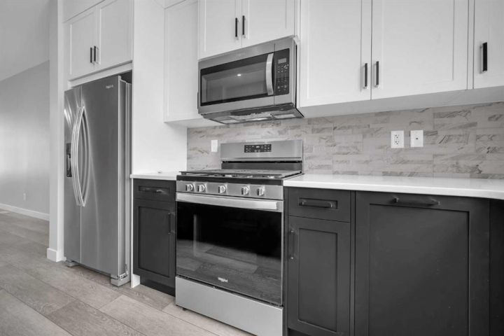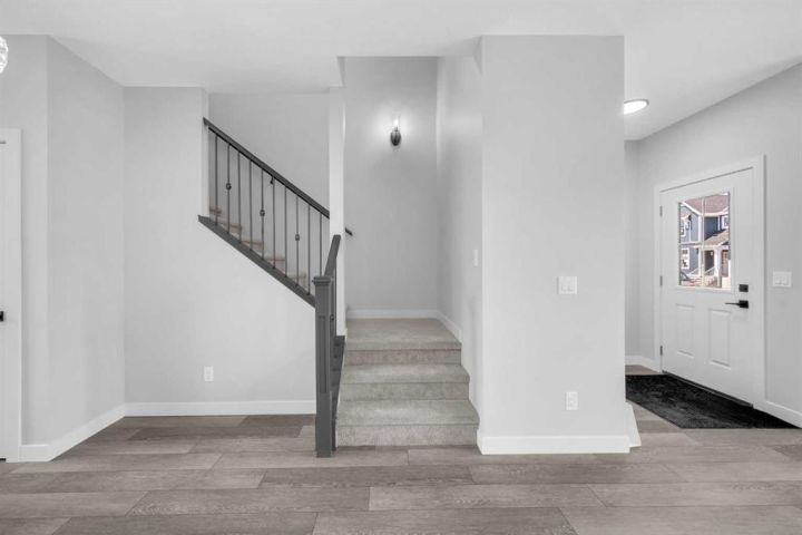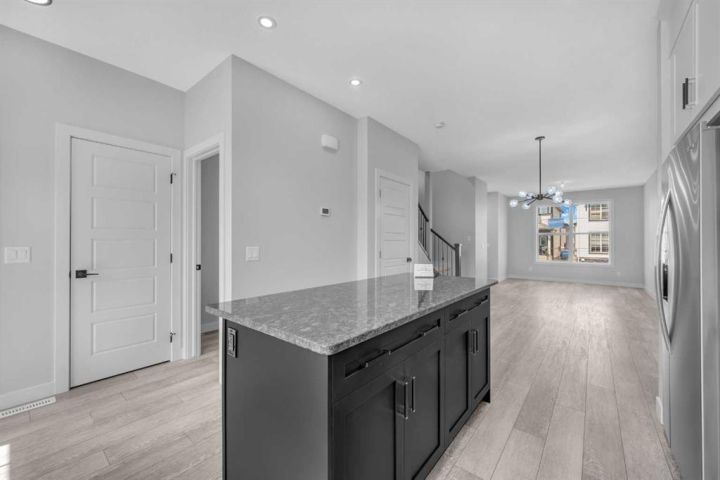 Stunning Brand-New Home in the Vibrant Community of Ambleton. Welcome to this beautifully crafted, never-lived-in home nestled in the sought-after new NW community of Ambleton. Designed to impress, this modern residence offers a seamless blend of style, comfort, and functionality. Step inside to luxurious vinyl plank flooring that flows effortlessly from the front entryway into the spacious, open-concept living area—perfect for both everyday living and entertaining. The chef-inspired kitchen boasts elegant quartz countertops, sleek stainless steel appliances, a gas stove, two-tone cabinetry, and ample counter space to bring your culinary visions to life. A generous dining area and bright living room provide the ideal setting to relax or host guests. Upstairs, you'll find a spacious primary bedroom retreat, complete with a walk-in closet featuring a large window and a 4-piece ensuite bathroom. Two additional well-sized bedrooms, another 4-piece main bathroom, and a conveniently located laundry room round out the upper level. The unfinished basement offers exciting potential for future development, whether you envision additional living space, a home gym, rec room, or a future suite (subject to city approval and permitting). Outside, the backyard includes an unpaved parking pad. This home is located just steps from a neighborhood playground, and minutes from top amenities including Carrington and Creekside Shopping Centers, Walmart, Costco, T&T Supermarket, and more. Enjoy quick access to Stoney Trail and Deerfoot Trail, making commuting a breeze. Don’t miss the opportunity to own this exceptional home in a thriving new community. Schedule your showing today!