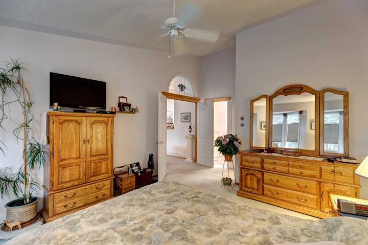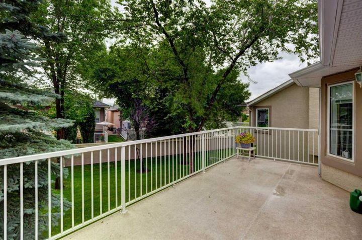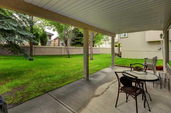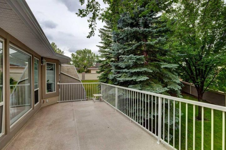 Villas in this quiet cul-de-sac rarely come to market! This lovely one owner walkout bungalow offers over 3,100 sq ft of developed living space. Vaulted ceilings create an immediate sense of grandeur, enhanced by a bayed living room with hardwood floors that flows seamlessly into the dining area, a layout ideal for entertaining. A large family room anchored by a 3-sided fireplace invites relaxed evenings, while its warm glow extends into the breakfast nook where meals feel especially warm and cozy. Patio doors open to a full-width deck, setting the stage for summer barbecues, morning coffees or quiet moments surrounded by treed views. Bright white cabinetry in the kitchen is paired with ample counter space and a window above the sink for natural light. French doors introduce the vaulted primary retreat, a sanctuary with oversized bay windows, generous dimensions suited for king-sized furniture, a walk-in closet and a private ensuite complete with dual sinks, a jetted tub and separate shower. The second bedroom offers excellent versatility as a guest room or home office and is complemented by a nearby 3-piece bath. Downstairs, more than 1,500 sq ft of finished walkout space is designed for connection and comfort. A massive recreation room with its own fireplace offers endless options to create media, games, hobby and fitness zones with ease. Walkout access leads to a covered patio where you can enjoy the outdoors without the burden of maintenance. This level also includes a third bedroom, a full bathroom and abundant storage. Secure parking is found in the double attached garage, adding extra convenience. A professionally managed complex ensures a lock-and-go lifestyle with lawn care and snow removal handled for you. Pet-friendly (upon board approval), this is a community where peace of mind meets connection. Year-round activities are available in McKenzie Lake, from swimming and boating in the summer to skating in the winter. Fish Creek Park and its extensive pathway system are steps away and McKenzie Meadows Golf Club, shopping, restaurants, South Health Campus and major roadways are all close by. This villa combines the ease of maintenance-free living with the space and comfort of a full family home, all in a beautifully established location near parks, pathways and the Bow River.