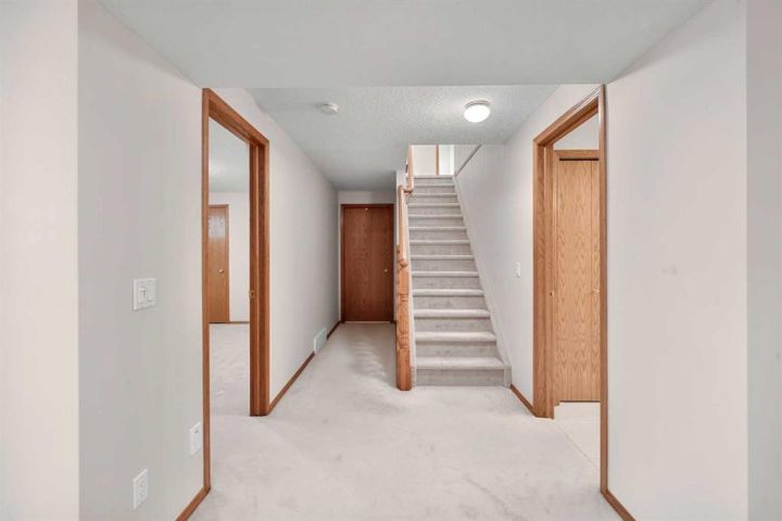 OPEN HOUSE CANCELLED AS HOME IS NOW CONTIONALLY SOLD! Welcome to this lovely 3 bedroom, 3 bathroom villa with 2136 sq ft of developed space and a front attached double garage. This awesome property benefits from having no condo fees, but is part of a home owners association, so you don't have to worry about grass cutting or snow removal! As you enter the home you are impressed by the abundance of natural light and the lovely vaulted ceiling. Relax in the spacious living room that has a bay window overlooking the front yard. There is a large formal dining area with bay window overlooking the side yard - perfect for large family gatherings. At the rear of the home is a kitchen, featuring oak cabinets and white appliances. Enjoy your family tea time in the dining nook or step outside onto your low maintenance deck for a BBQ and enjoy the views out over your West facing backyard with mature trees. The spacious primary bedrooms benefits from a bay window, a walk in closet and a 3 piece ensuite with a large vanity and linen closet. The 2nd bedroom on this floor is a good size too and is located close to the 4 piece family bathroom. Completing this level, is a laundry/mud room with built in cabinets. In the fully finished basement is a huge family/ games room with a gas fireplace - a great place for family movie nights! There is a large bedroom #3 and a 4 piece family bathroom. The massive storage room has a washer hook up and built in shelving. Did I mention this home benefits from a water softener and a central vac system? This home is located just a short walk from the river pathway system making it easy to have a lovely evening stroll. Don't miss out on this fabulous property! View 3D /multi media/virtual tour