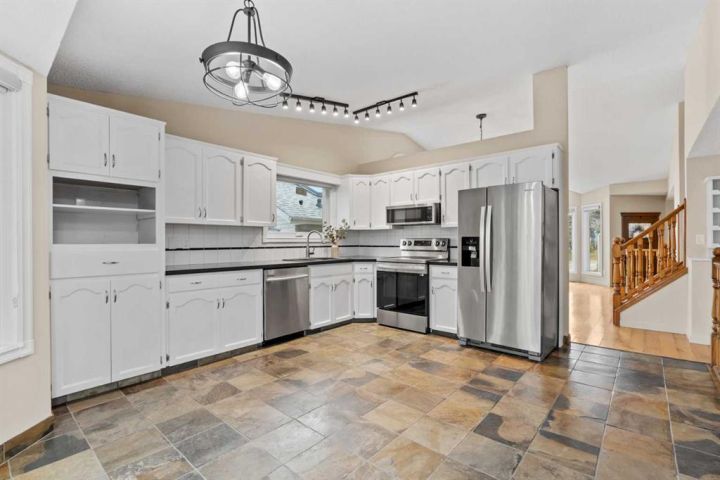 OPEN HOUSE SATURDAY NOVEMBER 1ST, 12-2PM. Welcome home to the beautiful NW community of Macewan. This charming former showhome boasts everything you could wish for, starting with its impeccable curb appeal to a complete transformation. With all of the updates complete, simply move-in and enjoy. New windows and trim (2023), new roof and gutters (2023), new plumbing and all poly b removed (2023), stainless steel appliances, kitchen renovation (2025), bathroom vanities (2025), new carpet (2023), blackout blinds, deck and firepit, storage shed. Ideally situated on a spacious 40-foot wide lot and walking distance to two schools, Simons Valley and Monsignor Neville. As you step inside, you are welcomed by vaulted ceilings and soaring windows creating a bright and open feel. The kitchen has been nicely updated with stainless steel appliances, stone countertops and a new sink. The sunken living room is a cozy retreat, framed by a brick surround wood-burning fireplace, inviting you to relax and unwind in style. The main floor is complete with a home office, spacious bathroom, laundry and an oversized, heated garage with a new overhead door. Heading upstairs, you will find a spacious primary retreat with a walk-in closet and updated ensuite bathroom. Two additional generously sized bedrooms upstairs provide ample space for family members or guests, conveniently sharing a nearby updated main bathroom. The fully finished lower level provides a wonderful area for kids to play or to set up a home theatre/games area. Set with a fourth bedroom and full bathroom, this basement is the perfect set-up. Step outside into the welcoming backyard, where mature trees, a spacious deck and corner firepit area offer a dreamy outdoor space to relax in. Living in Macewan offers an unparalleled lifestyle, with proximity to Nose Hill Park offering endless opportunities for outdoor enthusiasts, including hiking, biking, and running trails. Top-notch schools, playgrounds, and parks are all within the community and walking distance, catering to families of all ages. With a quick 15-minute drive to downtown and easy access to the airport and the mountains, convenience meets comfort in this exceptional home. Welcome home to Macewan perfection!