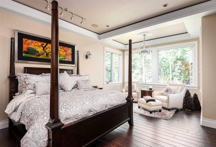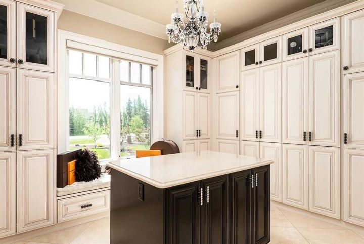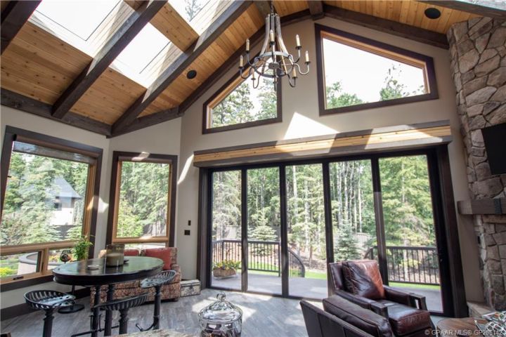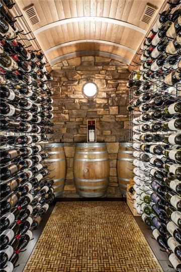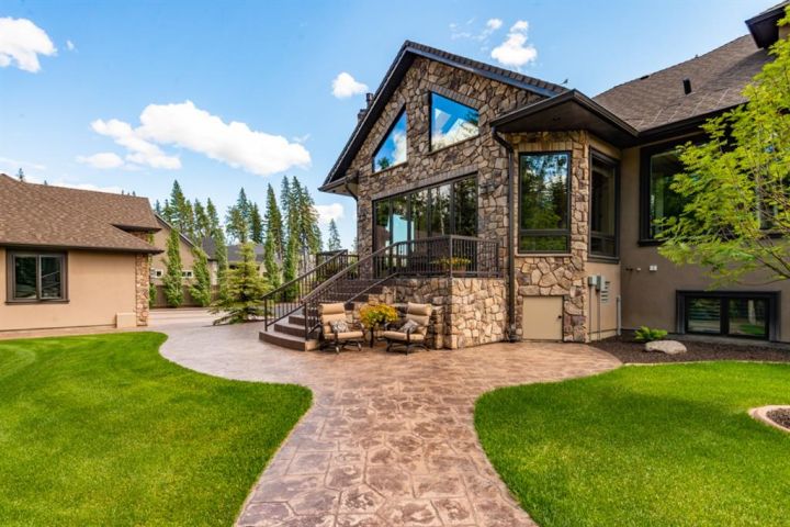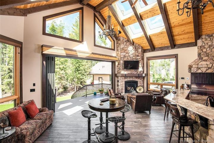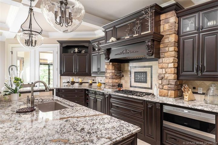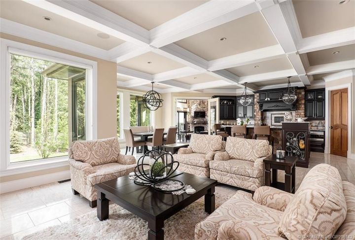 Welcome to an extraordinary residence where every detail has been meticulously curated to offer a lifestyle of unparalleled luxury and sophistication. Brazilian Mahogany french doors open to the foyer, defined by a striking 20’ coffered ceiling and crystal chandelier. A spectacular curved staircase consists of continuous wood railing, metal spindles and hardwood and carpeted treads. The main living areas are designed for both grand entertaining and intimate daily life. The living room boasts 20’ coffered ceilings and floor-to-ceiling windows that provide stunning views of the backyard & trees beyond. A two-sided stone fireplace connects seamlessly to the cozy hearth room, nestled between the kitchen and formal living and dining spaces. The chef’s kitchen is a masterpiece of design and functionality, featuring travertine floors, warm maple cabinetry, granite counters with tile backsplash, and professional grade Wolf, Sub-Zero and Fisher & Paykel appliances. A functional walkthrough butler’s pantry includes a second fridge and bar area. Adjacent to the kitchen is the 4-Season Sunroom, featuring a vaulted beam ceiling with skylights, a corner gas fireplace, and a wet bar and built-in Wolf BBQ kitchen. Folding doors open to the outdoor deck and an automated screen can be lowered. The master suite is a private sanctuary with coffered ceilings, indirect lighting, crystal chandeliers, sconces, and a raised gas fireplace with a stone surround. The spa-inspired ensuite features marble counters and floors, a custom tile walk-in steam shower with rain shower and body jets, a jetted tub with fireplace sconces, and Wolf towel warmer drawer. The expansive dressing room offers custom cabinetry, mirrors, and an island with marble countertop. Upstairs, hardwood floors line a stunning catwalk that overlooks the main floor. This level includes three additional well-appointed bedrooms: each with it's own ensuite bath and walk in closet. The basement boasts 10’ ceilings and is an entertainer's dream. Amenities include an open-style theatre with starlight ceiling, a large stone wet bar, and a cozy family room with gas fireplace. The stunning, temperature-controlled wine cellar, with a capacity for over 850 bottles, features a barrel ceiling, modern metal racking, a unique epoxy floor with cork mosaic, and a sealed glass door with a combination lock. There is also a large dedicated gym with stone TV wall, and a sophisticated office with cherrywood wainscotting, cabinetry, a cherrywood coffered ceiling, and a gorgeous leather floor. The attached 4 car garage and separate RV shop are meticulously finished with heated epoxy floors and custom garage cabinetry. The shop incl. an 18’W x 48.5’L RV bay, a Hotsy pressure washer, and exterior covered storage areas. Year-round comfort is ensured by a heated exterior concrete system and the home is managed by a Control 4 system with remote access to heating and cooling. This property is not just a home; it is a statement of comfort & refined living.