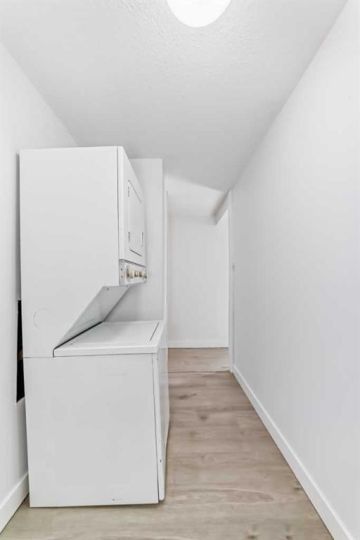 Dishwasher, Electric Stove, Range Hood, Refrigerator, Washer/Dryer Stacked, Window Coverings