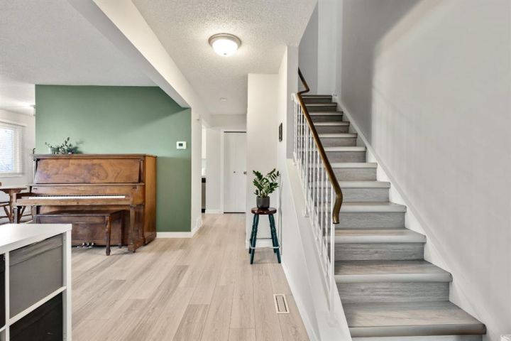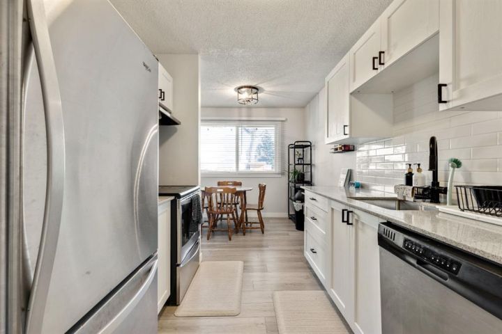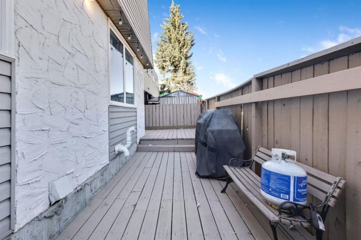 Investors & First-Time Buyers – No Condo Fees! Available for quick possession and welcoming to pets, this beautifully updated townhome offers unbeatable value with style and comfort throughout. Inside, the kitchen stands out with stainless steel appliances, modern cabinetry, quartz counters, a designer backsplash, and a deep basin sink with upgraded faucet. A full pantry adds even more storage. Next to the kitchen, the refreshed half bath features new quartz counters, sink, faucet, and toilet. The main floor living area is bright and versatile, perfect for different furniture layouts. Even the fireplace adds character, whether used as-is or reimagined as a cozy candle feature!! New window coverings, luxury vinyl plank flooring, and a fresh coat of paint on the main and upper levels tie everything together with a clean, contemporary feel. Upstairs you’ll find three spacious bedrooms plus an updated full bathroom with a relaxing soaker tub and a handy linen closet. The lower level offers extra living space, ideal as a family room, games area, or teen retreat. There’s also a bar area, large utility/laundry room, and generous storage!! Practical upgrades include a brand-new furnace, hot water tank (just replaced), and recently updated windows for improved efficiency!! Outside, low-maintenance vinyl siding, a wrap-around deck, and a powered parking stall add convenience, with extra street parking available for guests. The location is excellent, close to schools, shopping, and with quick access to Deerfoot Trail for an easy commute!!