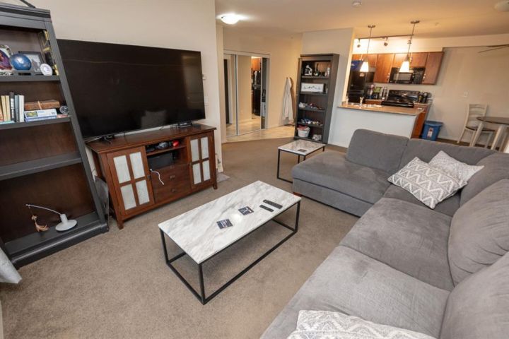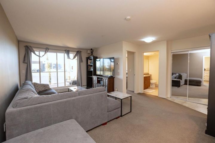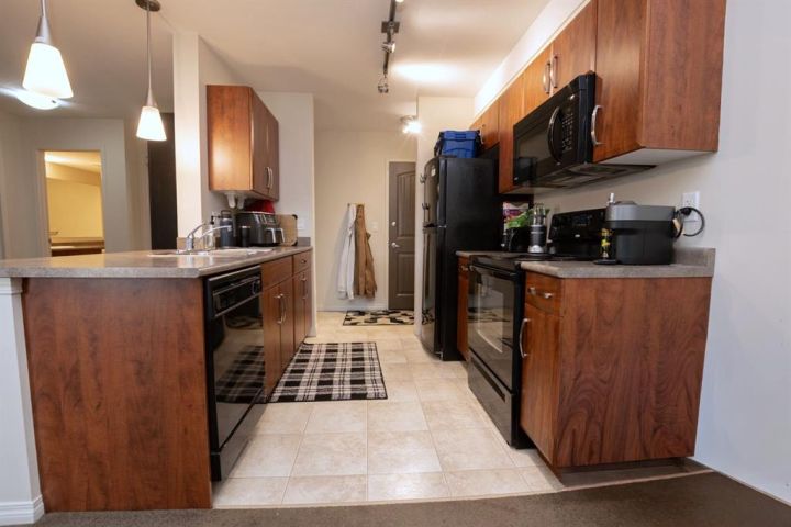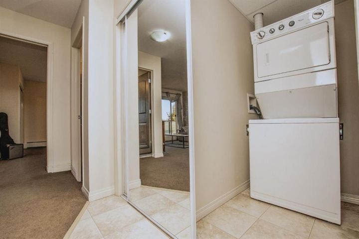 Step inside this bright and inviting two bedroom, two bathroom corner condo in Aurora Estates, where comfort and style blend effortlessly. The open concept layout connects the modern kitchen, equipped with six appliances, to a spacious living and dining area that’s filled with natural light. The primary bedroom offers a walk through closet leading to a private four piece ensuite, while the second bedroom and additional full bathroom provide flexibility for guests, family, or a home office. In suite laundry adds convenience, and every detail of the design supports easy, low maintenance living. From the living room, step out onto the MASSIVE 8' x 22' deck, a perfect space to relax or entertain while enjoying your private corner location. An assigned underground heated parking stall keeps your vehicle protected through the winter months. Aurora Estates is one of Grande Prairie’s most sought after condominium communities, admired for its professional on site management, cleanliness, and peaceful setting. Condo fees include heat, water, garbage removal, snow clearing, landscaping, and full building maintenance, allowing you to enjoy a quiet and worry free lifestyle in a beautifully cared for environment.