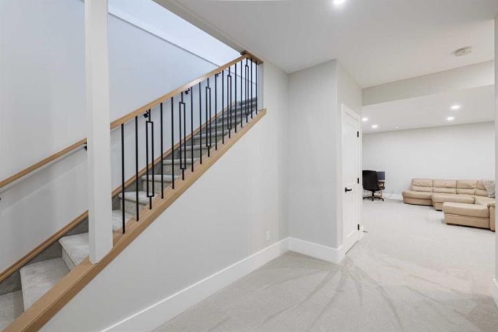 Welcome to the finest of Wildwood! This Custom-Built Masterpiece was meticulously designed & is an exemplary testament to fine luxury homes. This two-storey 4 bedroom and 4.5-bathroom home is ideal for a large family seeking the ultimate dream home to live & entertain. There are no neighbours behind as this home backs onto a children’s park. As you enter this home, you will be welcomed by a grand open foyer with elevated ceilings, warm earth tone colours, and great Lux windows offering an abundance of natural light. The open concept main floor offers an impressive white oak staircase, white oak wide plank hardwood floors, front home office, large living & dining area, roomy mud room, and pantry. The custom-built floor to ceiling kitchen highlights beautiful premium granite countertops, an expansive 10’ long island, champagne bronze fixtures, and Miele appliances that include a built-in panelled fridge/freezer, natural gas range, range hood, built-in wall convection oven, and speed oven/microwave. The spacious living room has elegant wall-to-wall built-ins & a gas fireplace. The long stretch of windows & patio doors along the back wall floods the main floor with natural light. The living area is adjacent to a sheltered deck through the patio doors that lead out to a beautifully landscaped backyard with firepit area. Upstairs you will find a stunning Primary Bedroom with 12 ft soaring ceilings, oversized windows, oversized custom-built walk-in closet & a spa-inspired 6-piece ensuite. The luxurious ensuite offers 24 x 48 Italian tile finishes, in-floor heating, a freestanding soaking tub, an oversized stand-up shower with rain head & body sprays. The two additional bedrooms upstairs offer generous spaces with each having a custom-built walk-in closet and 3-piece ensuites. Completing the upper floor is an oversized laundry room offering a sink & ample storage. The carpeted fully finished basement offers additional living space with one additional bedroom, 9’ clear ceilings, a 3-pc bathroom with stand-up shower, a gym with durable gym flooring & mirrored walls, a wet bar with 36” fridge, hydronic in-floor heating & a large entertainment media room with an acoustic panel wall with built-ins and rough-in for sound surround. The outdoor areas have been thoughtfully landscaped with perennial plants, an irrigation system, and front & rear brush finished concrete patios. The backyard features a covered concrete deck & separate deck with natural gas BBQ hookup. The oversized, drywalled, insulated, & spray foamed double attached tandem garage offers hydronic in-floor heating, hot & cold-water taps, and tall ceilings. The mechanical room features a boiler system for in-floor heating and domestic hot water, 2 Carrier high-efficiency heat furnaces, & an HRV system. This home is close to Wildwood Community Association, Wildwood Elementary, Edworthy Park, Shaganappi Point Golf Course, minutes to DT Calgary, & steps from the Bow River Valley. Do not miss out & book your showing today!