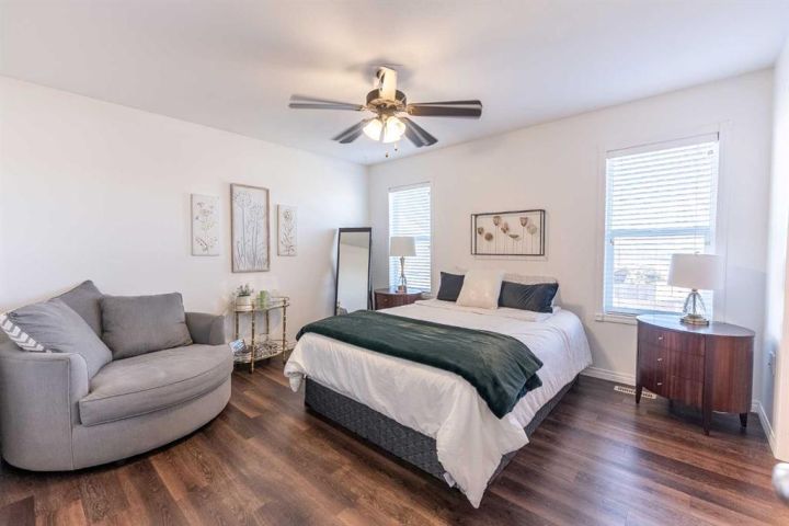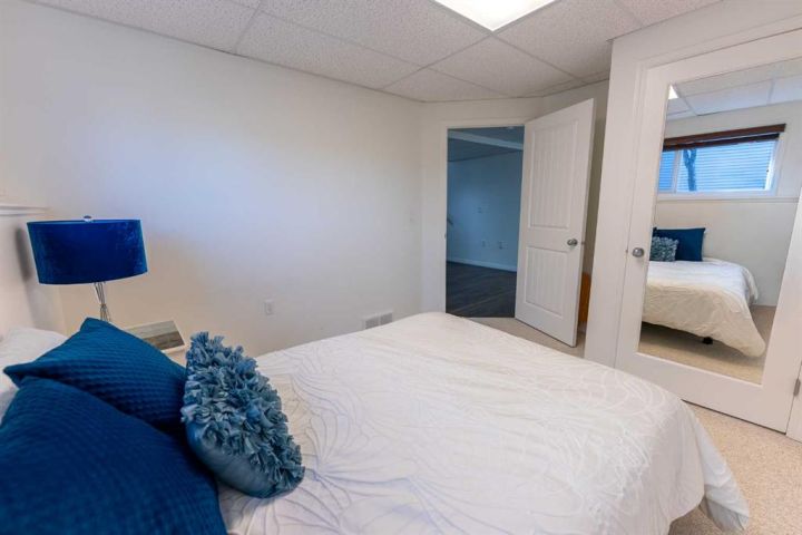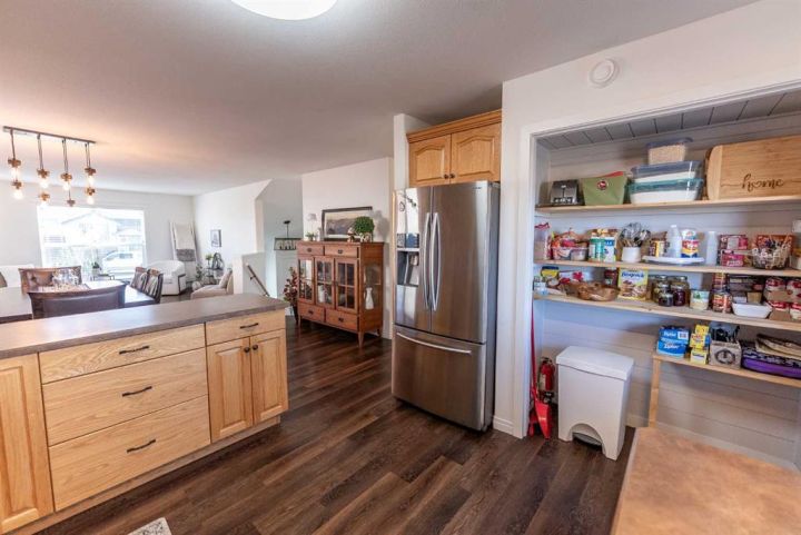 Blackfalds Gem: Designer 5-Bedroom Modified Bi-Level on a Pie Lot This gorgeous, modified bi-level offers a designer aesthetic in a fantastic Blackfalds location. Featuring 5 bedrooms and 3 bathrooms, this home is perfectly staged and ready for you. • Open Concept Living: Stunning entrance with a fireplace accent wall, beadboard, wood mantle, and built-in benches. • Versatile Space: Entrance level bedroom/office with a vaulted ceiling. • Family Layout: The upper level includes an open floor plan, two more bedrooms, and a 3-piece ensuite off the extra large primary bedroom. Kitchen enhance with extra cabinets, large peninsula and a door leading out to a large west facing back deck for evening barbecues or just relaxing with a cool drink. • Finished Basement: Offers a spacious family room, two additional bedrooms, and a full 4-piece bathroom. • Convenient Main floor laundry. Located on a large, pie-shaped lot in a quiet cul-de-sac with abundant off-street parking and room for a garage! • Recreation Hub: Just blocks from the Abbey Centre and Eagle Builders Centre. • Outdoor Access: Close to walking paths, a pond, playgrounds, and parks. • Amenities: Minutes from shopping, schools, and restaurants and recreation centers Just move in and relax in this inviting Blackfalds beauty! Its a great home, isn't it! Shouldn't it be yours?