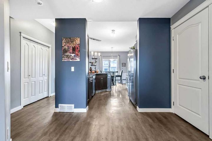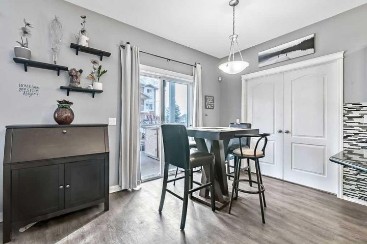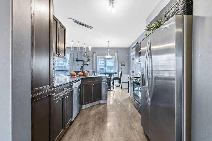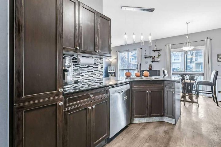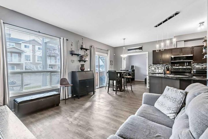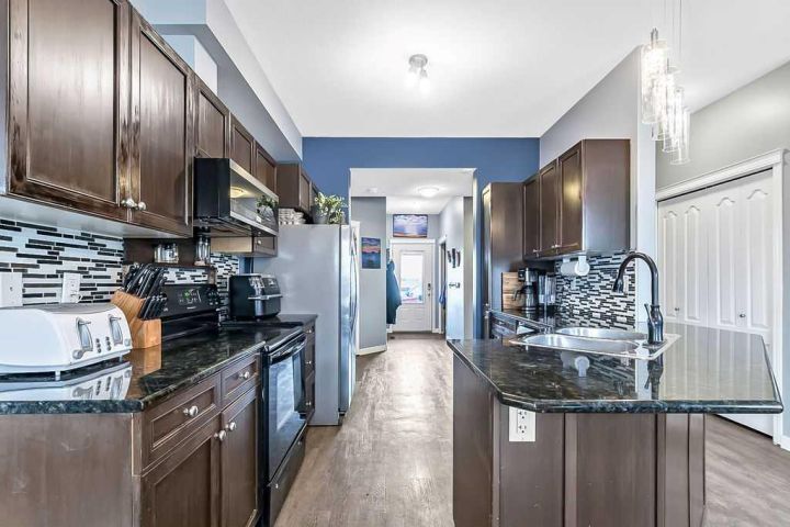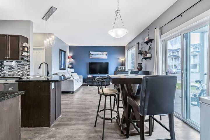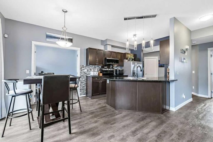 Welcome to Sunrise Terrace in High River! This bright and spacious ground-level bungalow offers the perfect blend of comfort, convenience, and low-maintenance living. Featuring 2 bedrooms and 2 full bathrooms—including a versatile third bedroom or den with French doors—this home offers flexibility for your lifestyle. The open-concept floor plan is filled with natural light and features a stylish kitchen with dark granite countertops, breakfast bar, and adjoining dining area with sliding doors leading to the east-facing patio. The spacious living room connects seamlessly to the kitchen and dining area, creating an inviting space for everyday living and entertaining. Enjoy two private patios—one east-facing to capture the morning sun and one west-facing with beautiful mountain views and evening light. The primary bedroom includes a full 4-piece ensuite, and there’s a second full bathroom conveniently located near the additional bedroom. With updated vinyl plank flooring throughout, newer washer, dryer, and microwave, two parking stalls, and an in-unit storage area, this home truly has it all. Sunrise Terrace is a well-managed complex with low condo fees that cover most utilities, plus easy access to walking paths, parks, schools, and local amenities.