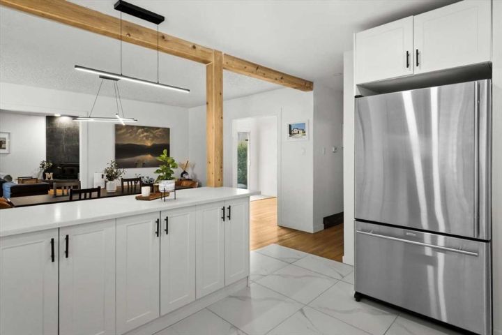 Nestled on a prominent corner lot at the top of the hill on 32nd Avenue and 52nd Street, where Montgomery meets Varsity, this thoughtfully upgraded bungalow offers the perfect blend of timeless finishes, modern updates, and everyday convenience. Just a short stroll from the Bow River Pathway, University District, and Market Mall, this location provides the perfect balance of connectivity while retaining the charm and character of a well-established, welcoming neighborhood. In the midst of a competitive market, our sellers were fortunate to secure this exceptional home after connecting personally with its previous owner, who had lovingly cared for it since 1996. Over the past three years, they’ve added their own personal touches, created countless memories, and continued the home’s story of warmth, character, and pride of ownership. Whether you are a developer, young professional couple, or downsizer seeking main-floor living, the possibilities are endless here. With the sellers’ family needs evolving, they are ready to move on and pass this cherished home to its next chapter. From the exterior, crisp white cladding with green accents offers a fresh, inviting presence that complements the home’s elevated setting. Upon entering, you’re welcomed by a bright entryway, while the home’s original hardwood floors lend a touch of classic charm. Opening seamlessly into a generous dining area, this is the perfect setting for hosting dinners or enjoying late-night game nights with family and friends. To the right is the renovated kitchen, featuring marbled tile floors, white floor-to-ceiling soft-close cabinetry, butcher block and quartz countertops, and newer stainless-steel appliances. The elevated family room to the left invites you in with its large windows that fill the space with natural light and a beautifully refinished tile that borders the wood-burning fireplace. At the back of the home, a versatile flex space sits just off the dining area and kitchen, ideal as a reading nook, home office, or casual lounge. Sliding patio doors open directly from here to the expansive backyard, where newly installed sod and freshly planted aspen trees create a private oasis—perfect for hosting barbecues or simply relaxing in the sun. The main level also features an upgraded bathroom and two well-appointed bedrooms. Descending to the basement, you’ll find a versatile third bedroom and full bathroom, outfitted with a Murphy bed, making it perfect as a guest retreat or workout space. The spacious laundry room offers ample room for storage and organization, while the adjoining hobby shop has long been a cherished space for the sellers’ home projects and renovations. Additional updates include a newer furnace, hot water tank, and roof, all providing peace of mind to the next owners for years to come.