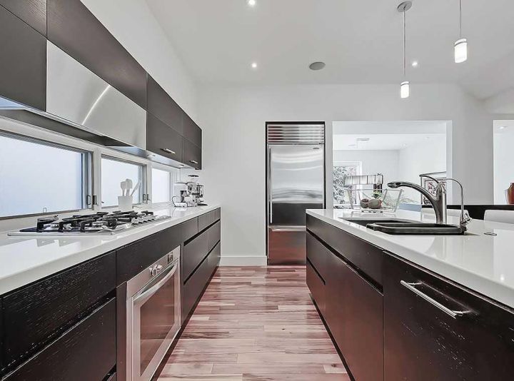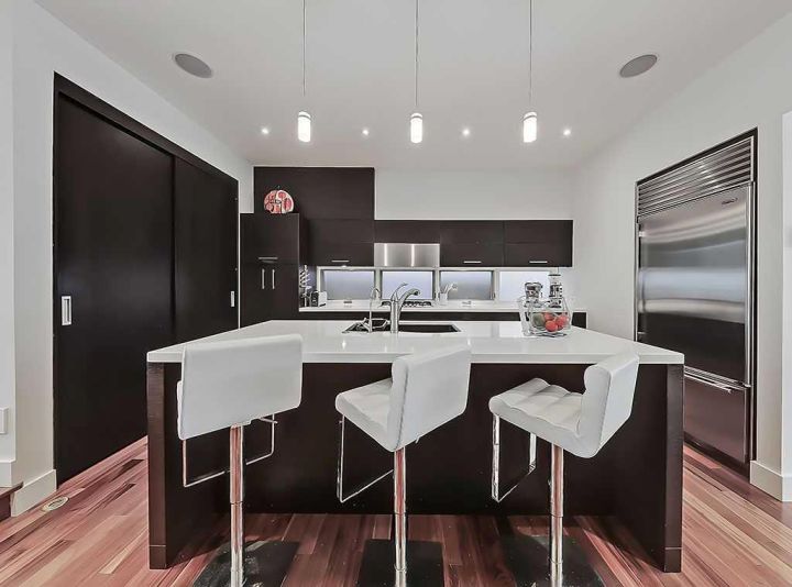 TIMELESS DESIGN MEETS MODERN LIVING IN WEST HILLHURST. This custom-designed home in sought-after West Hillhurst, blends a refined style with warm materials creating a unique home with timeless appeal. Set on a 130' deep south-facing lot, the property offers over 3,200 sq. ft. of living space with high-quality finishing, delivering exceptional value. The MAIN LEVEL’s layout balances open-plan flow with rooms defined by level changes and feature elements that create cozy, inviting spaces. This intimate design is complimented by 9-foot flat ceilings, rich Tigerwood floors, large windows, and an open staircase featuring skylight that floods the home with natural light. The heart of the home is an entertainer’s dream - a sleek kitchen with custom cabinetry, a massive 8’ quartz island, full wall pantry, and top-tier Sub-Zero and AEG stainless appliances. Opposite the island is a built in desk, offering lots of area for guests to "hang out", or as a work surface. The spacious great room features a two-sided gas fireplace and built-in media wall and seamlessly connects to the tiled mudroom and the Zen-like backyard retreat. The SECOND LEVEL, offers two bedrooms separated for privacy, each with a 4 piece bath. The primary includes a fireplace, walk-in closet, and spa-inspired ensuite with heated floors, jetted tub, dual vanities, shower with body sprays, rain shower, and bar shower heads, framed by 10mm glass. The THIRD FLOOR flex space is an ideal home office, gym, or studio which opens onto a private 13’ enclosed sunroom (this level could also be converted to bedroom, with a few modifications). The fully finished BASEMENT has 9’ ceilings and a large media/rec room with 5.1 surround sound/built-in speakers, a full bar area, ( mechanical room behind offers possibility for bar sink), guest bedroom, and 3 piece. bath with zoned in-floor heating throughout. House interior was repainted end of 2024, and new roof 2020. Double high velocity furnaces, provide more efficient heat/air distribution, and soft "flex" ducting reduces noise and dust. Located minutes from Kensington shops and restaurants, several top schools, the river pathways, Foothills hospital, U. of C., SAIT, and downtown, this home delivers style, substance, and a location that never goes out of fashion. A list of upgrades and Maintenance history, can be found in supplements.