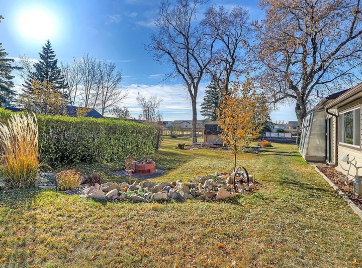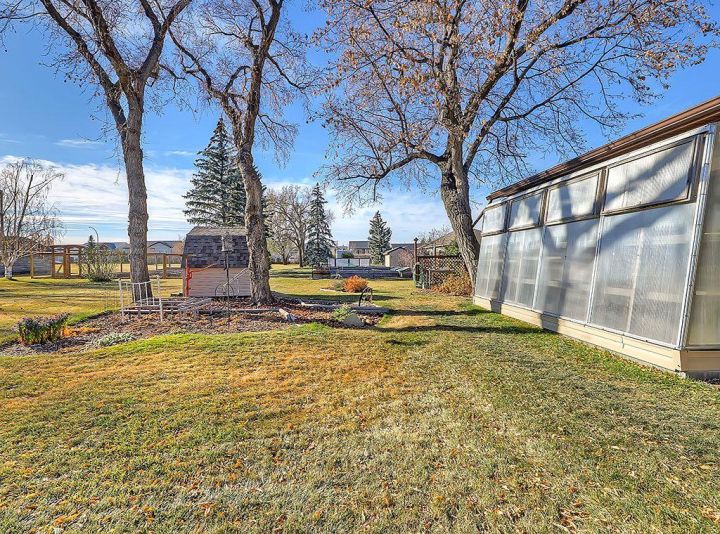 Welcome home to this beautifully maintained 1,686 sq. ft. bungalow, perfectly situated on a rare ½ acre lot in the charming community of Nanton, AB. From the moment you arrive, you’ll feel the pride of ownership and care that has gone into every detail of this special property. Step inside to a bright, open-concept main level that blends comfort and functionality. This home features 3 bedrooms and 2 full bathrooms, one being a 3piece ensuite off the primary bedroom. The main-floor laundry adds everyday convenience . The spacious kitchen features high-quality custom oak cabinetry, updated appliances, and plenty of storage. Enjoy family meals in the inviting dining area or relax with a coffee in the sunny front sitting room. The living room offers a cozy retreat with a beautiful gas fireplace, perfect for Alberta evenings. The undeveloped basement is a blank canvas — imagine a large future family room and home gym. There’s also an abundance of storage space, two mechanical rooms and an Nanton home isn’t complete without a spacious Cold Room! Outside, your own private oasis awaits! Relax on the covered back deck overlooking a park-like yard with mature trees, raised garden beds, and perennial landscaping. Enjoy apple and sour cherry trees, Saskatoon bushes and a Raspberry patch. Water line to the garden, and gardening irrigation lines.A true gardener’s delight. Entertain family and friends, or simply take in the serenity of this peaceful setting. And here’s a rare bonus…..this property has its own well!! For the hobbyist or handyman, the oversized garage with attached shop and greenhouse will be a dream come true….the ultimate “man cave” or creative workspace. There’s also RV parking at the rear, offering convenience and flexibility. Enjoy the space and privacy of country living, all while being right in town. Nanton’s friendly atmosphere and small-town charm make it a wonderful place to call home. Call your fave Realtor and book a showing today!!
