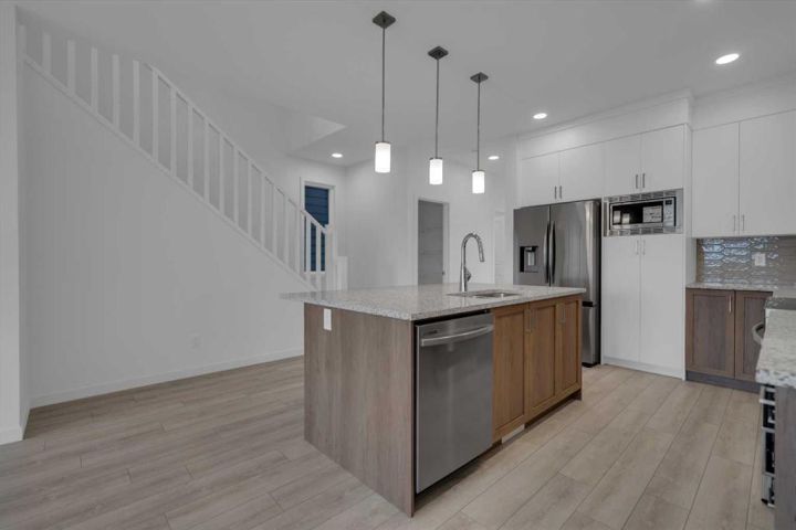 Welcome to Your Dream Home in Calgary's most sought after lake community in MAHOGANY – Where Luxury Meets Practical Living! Step into this brand new, never lived in masterpiece built by EXCEL HOMES – the upgraded Berkley model offering 1870 sf of contemporary design, exceptional functionality AND a 2 bedroom LEGAL BASEMENT SUITE W/PRIVATE ENTRY. Nestled in Calgary’s vibrant LAKE COMMUNITY, you’ll enjoy quick access off Stoney Trail or Deerfoot Trail. From the moment you walk in, this home impresses with its thoughtful layout and premium finishes. The open-concept floor plan seamlessly connects the living room, dining area, and showstopper kitchen – the true heart of the home. Cook like a pro in your chef-inspired kitchen with upgraded stainless steel appliances including built-in microwave, chimney-style hood fan, and an abundance of cabinets and deep pot drawers...and a massive island w/even more storage!. You'll also find a versatile flex room at the back of the house - perfect for home office, playroom or guest bedroom. Upstairs, the second level offers three spacious bedrooms including a stunning primary suite with a walk-in closet and dual sink ensuite. A vaulted bonus room with pot lighting adds an elevated family retreat, and the convenient upper-level laundry room makes day-to-day living easier. Thinking about rental income or extended family options? This home offers a LEGAL TWO BEDROOM SUITE, all done to upstairs standards and a private exterior side entrance. This is an amazing opportunity for rental income or extended family! As a Certified Built Green home, you’ll benefit from energy-saving features and smart home tech, including Ring doorbell, Wi-Fi-enabled garage opener, smart thermostat, extra CAT6 and USB outlets, plus 9' knockdown ceilings, metal stair railings, and luxury vinyl plank flooring on the main level. Whether you're a growing family, savvy investor, or multi-generational household, this is the home you've been waiting for. Move in, unpack, and start living your best life in Mahogany.