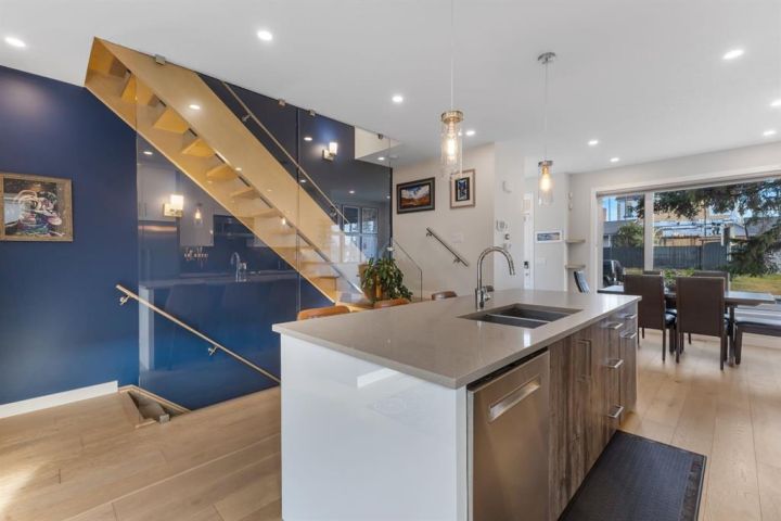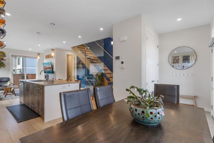 Experience refined living in one of Calgary's most sought after neighbourhoods- Windsor Park! This upscale townhome offers the perfect blend of elegance, comfort & modern design. From the moment you step inside, you are greeted by a bright, open concept layout. The kitchen is a true showpiece; equipped with Fisher & Paykel appliances, sleek cabinetry and a gorgeous island; an excellent space for entertaining. Cozy up in the living room next to the gas fire place on those chilly days & turn on the A/C on those hot days! A stunning glass-encased staircase adds to this homes modern elegance. The upper level continues to impress; a stunning skylight that fills the BONUS ROOM with natural light, spacious bedrooms & IN-FLOOR heating in ALL full bathrooms, for year round comfort! The primary bedroom features high ceilings, a large walk-in closet with built in shelving, and a 4 piece bathroom with double vanities. The upstairs second bedroom features a walk-in closet as well. The fully FINISHED BASEMENT offers additional living space, equipped with a wet bar, living space, a third bedroom & a full bathroom (with in-floor heating). Ideal for a media room, home office or entertainment space! Step outside on to your private, fenced in patio yard- steps away from your detached garage and equipped with a natural gas line. This exceptionally well maintained home's location has it all! Walking distance to Brittania Plaza, Chinook Mall, Stanley Park & dog parks. Just a 10 minute drive to the heart of downtown & only 7 minutes to Mission shops! OPEN HOUSE Sunday November 2nd from 12-3. Come see this immaculate property yourself & experience all that Windsor Park has to offer.