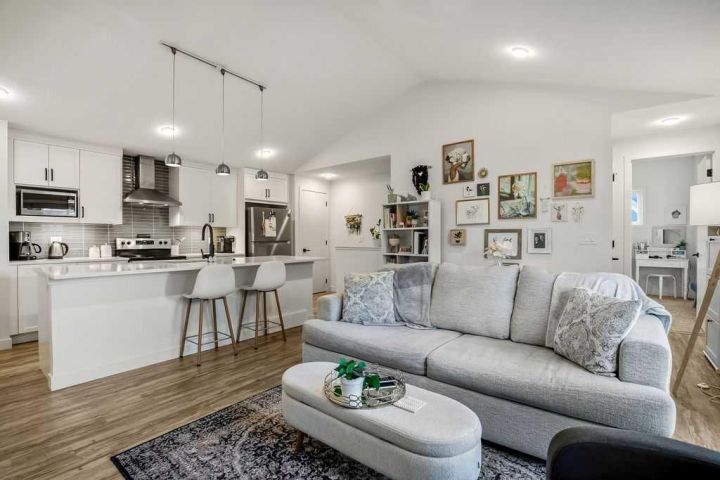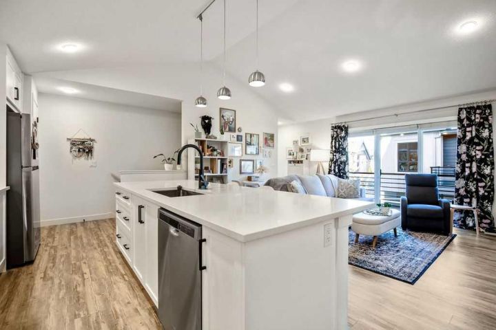 Modern Living in the Heart of Walden! This stylish Avi-built, 3-bedroom, 2-bath townhome offers over 1,176 sq ft of thoughtfully designed space—all on one level, a unique feature that highlights the smart and efficient layout - and loads of upgrades including Air Conditioning. Newly built in 2021, you’ll enjoy contemporary finishes throughout, including vaulted ceilings, vinyl plank flooring, stainless steel appliances, and a smooth-top range(there is a gas line also!) in the sleek, open-concept kitchen. The bright and functional layout is perfect for both relaxing and entertaining. The primary suite is a true retreat, featuring a luxurious ensuite with dual sinks and walk-in closets. Soak up the sunshine on the expansive west facing 170 sq ft deck, complete with low-maintenance Duradek finishing and a built-in gas line ready for your favorite BBQ. Set in a friendly community, this home is just steps from parks, scenic pathways, schools, and local shopping—and just a short walk to the ridge. With quick access to Stoney Trail, you can be out of the city and on your way in minutes. The large attached 22.5’ x 20’ finished and heated garage with slat wall to keep it all organized adds a polished touch to this already impressive home in one of Calgary’s most walkable and well-connected communities. Contact your favorite realtor today to schedule your viewing!