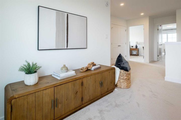 Located in The Ranch, one of Strathmore’s most sought-after new communities, residents will love the small-town charm, scenic surroundings, and quick access to schools, shopping, and parks. Experience the perfect blend of style, space, and serenity with the Jayne by Akash Homes. This thoughtfully designed 1,939 sq ft home offers 3 bedrooms, 2.5 bathrooms, and an open-concept layout that’s perfect for growing families. The main floor features 9’ ceilings, a spacious kitchen with quartz countertops, a walk-through pantry, and a central island ideal for entertaining. Upstairs, enjoy the convenience of second-floor laundry, a generous bonus room, and a luxurious primary suite with a walk-in closet and ensuite. **PLEASE NOTE** PICTURES ARE OF SHOW HOME; ACTUAL HOME, PLANS, FIXTURES, AND FINISHES MAY VARY AND ARE SUBJECT TO AVAILABILITY/CHANGES. HOME IS UNDER CONSTRUCTION.