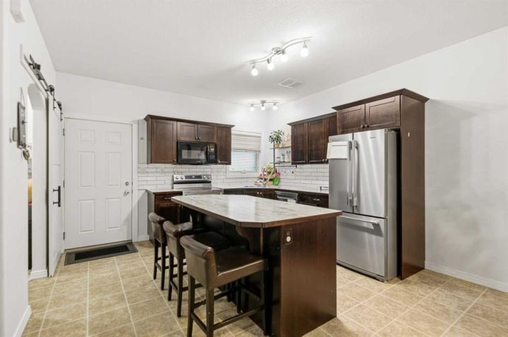 This well maintained two-storey condo with a single attached garage would be the perfect home for a first time home buyer. Freshly painted throughout, this home offers a number of updates including updated vinyl Plank flooring, new Samsung washing machine and dryer, living room chandelier, hardwired smoke and carbon monoxide detectors, and a convenient garage door opener. This condo also features updated kitchen backsplash and countertops, an updated stovetop, faucet, and a Whirlpool fridge and dishwasher. There is an installed wired camera at the back of the condo as well. As the basement is partially finished, it offers an opportunity to align it according to your preferences and needs. Upstairs you will have two bedrooms both featuring an ensuite and a walk in closet. The main floor has an open floor plan which gives you easy access from the living room, kitchen and dining. The living area features a gas fireplace which is perfect for relaxation. This location is walking distance from East Hill Shopping Centre and close access to Ironstone Neighborhood Park. Some features include Vinyl Plank flooring in Living room & Basement. Additional connection to Laundry on the main floor. Central Vacuum throughout the house.
