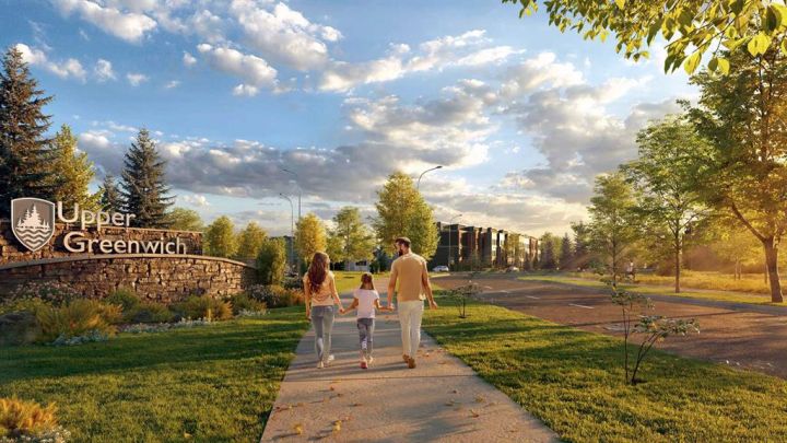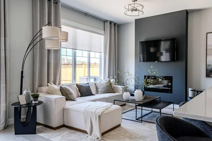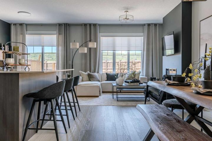 Welcome to the Mackenzie 22' by Partners. This upgraded 1,985 sq. ft. paired home with a front-attached garage is located in the sought-after NW community of Upper Greenwich. The home offers modern style, thoughtful functionality, and the comfort of new home warranty, making it a great fit for families, professionals, or anyone looking for a comfortable and low-maintenance lifestyle in a growing community. The main floor features a bright, open layout with 9 ft. ceilings and elevated finishes throughout. The kitchen includes upgraded cabinetry, upgraded quartz counters, a full-height backsplash, stainless steel appliances, a gas cooktop, and a chimney-style hood fan. The living and dining areas are designed for both daily living and hosting and are anchored by an electric fireplace with a full-height tile surround. From here, you can step out to the rear deck with a BBQ gas line already in place. Upstairs, a versatile bonus room works well as a home office, media space, or playroom. The primary suite offers a spacious walk-in closet and a beautifully upgraded ensuite that feels like a private retreat, complete with a frameless 10 mm glass shower, quartz bench, full-height tile, dual sinks, and curated designer finishes that give the space a spa-inspired feel. Two additional bedrooms, an upgraded shared bathroom, and upper-floor laundry complete the level. Additional upgrades include air conditioning, upgraded carpet, and a black plumbing and lighting package. This home also features an undeveloped sunshine basement, bringing in natural light and offering the opportunity to expand your living space in the future. Quality exterior and interior finishes include fiber-cement siding with stone accents, exposed aggregate entry, front yard landscaping, soft-close cabinetry, quartz throughout, knockdown ceilings, pot lights, a humidifier, a tankless hot water heater, and an enhanced sound-dampening party-wall system for privacy and comfort. Upper Greenwich is surrounded by walking paths, greenspace, playgrounds, and sports courts. You are minutes from the Bow River pathway system, Calgary Farmers’ Market West, WinSport, retail, services, and future community amenities. It is a peaceful yet well-connected location in one of Calgary’s most desirable new Northwest communities. The Mackenzie 22' offers elevated finishes, a functional and stylish layout, and a location that supports an active and convenient lifestyle.