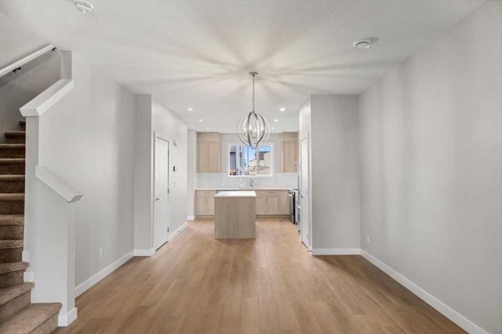 Welcome to the Edward by Partners Homes, located in the new North Calgary community of Keystone Creek, across from an environmental reserve. With 3 bedrooms and 3 full bathrooms, this newly built quick-possession home blends modern style, everyday convenience, and long-term value, and includes full new home warranty for added peace of mind. The main floor features a versatile front flex room/bedroom, ideal for a home office, guest space, or multi-generational living. An open-concept layout connects the dining and living areas to a well-appointed kitchen with shaker cabinets, quartz countertops, a large island, upgraded hood fan, and gas range, along with plenty of storage. A rear mudroom provides access to the backyard, complete with a BBQ gas line for outdoor living. A full bathroom with a walk-in shower completes the main floor for added convenience. Upstairs, the primary suite includes a walk-in closet and an ensuite with dual sinks and a walk-in shower. Two additional bedrooms, a central bonus room, a full bathroom, and upper-level laundry with washer and dryer included make this layout highly functional for families or shared living. Additional features include 9’ ceilings on the main and in the basement, a two-car gravel parking pad, Prairie elevation, upgraded finishes, and front yard landscaping with trees and shrubs. Keystone Creek is a thoughtfully planned community in North Calgary offering quiet streets, green spaces, and direct access to pathways, wetlands, and parks. Daily essentials, schools, dining, and services are minutes away, with convenient access to CrossIron Mills, YYC Airport, Stoney Trail, and Deerfoot Trail. Book your showing today to discover why Keystone Creek is quickly becoming one of Calgary’s most desirable new communities.