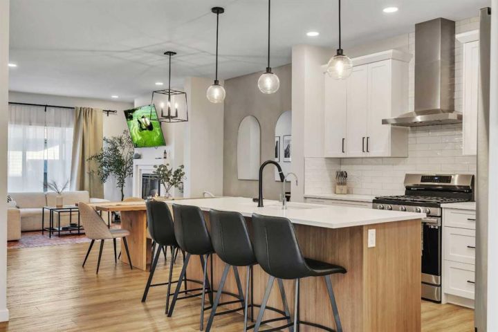 Welcome to this beautifully updated home in the sought after community of Rangeview Springs! The main level features a bright open floor plan with modern finishes, a custom built fireplace mantel, spacious living/dining areas, an office/flex space and a convenient half bath. Upstairs you’ll find three generous bedrooms, including the stylish primary with its own ensuite bathroom, plus another full bath and a large bonus room with vaulted ceilings. The upgraded laundry room includes built in cabinetry for extra storage and function. Downstairs the legal basement suite offers a separate side entrance, full kitchen, bedroom, full bathroom, independent furnace and hot water tank - perfect for rental income or extended family. Enjoy the outdoors with a landscaped yard, rear deck with a BBQ gas line and a new fence for privacy. The detached double garage is insulated, drywalled and heated, with elegant French doors for easy access. Additional highlights include air conditioning, a water osmosis system and water softener, all to be assumed by the buyer for $124.70 per month. Situated close to picturesque ponds and scenic walking paths, this home offers the perfect balance of comfort, quality and location.