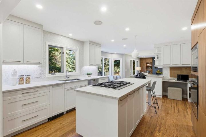 **OPEN HOUSE NOV 1 & 2 FROM 1-3PM** Welcome to Willow Park Estates, where timeless architecture meets modern refinement. Perfectly positioned on a massive pie-shaped lot siding onto a green space and the Willow Park Golf Course, this impressive 2-storey home offers over 2700 sq. ft. above grade, a fully finished basement, 4 bedrooms, 4.5 bathrooms, and a double attached garage. Step inside to a bright, open foyer that immediately feels inviting. The home has been recently repainted, with refinished hardwood floors adding warmth and sophistication throughout. The open-concept layout connects the formal living and dining areas to the beautifully renovated kitchen—a true centerpiece of the home. Featuring quartz countertops, a central island, new Jenn-Air appliances and custom cabinetry, this space was reimagined to combine everyday practicality with elevated design. The adjacent home organization area provides a dedicated space for managing family life, while the cozy family room with a gas fireplace and custom built-ins invite you to relax and unwind. A bar area and updated 2-piece powder room complete this thoughtfully designed main level, making entertaining both easy and elegant. Upstairs, the layout continues to impress. There are three spacious bedrooms, a dedicated office with built-in desk and cabinetry, and a bonus room designed for flexibility. Complete with a Murphy bed, second fireplace, its own bar area, and a private ensuite, this room can serve as a media lounge, guest suite, or teenager’s retreat. The primary suite is a true sanctuary, offering custom built-ins, a private balcony overlooking the treed yard, and a luxurious ensuite featuring dual vanities, a huge jetted tub, and a steam shower. The upper-level laundry—featuring a brand-new washer and dryer—adds everyday convenience, alongside an updated 3-piece bathroom serving the secondary bedrooms. Downstairs, the fully finished basement provides even more versatile living space. A large recreation room is perfect for games, fitness, or family movie nights. There’s also a fourth bedroom, a 3-piece bathroom, and a huge storage area complete with built-in shelving. The home’s updated electrical system, new HRV, and new A/C unit enhance comfort and efficiency throughout all seasons. Step outside to your own private retreat. The massive pie-shaped yard is surrounded by mature trees, offering serenity and privacy. A large deck with a BBQ gas line and gas fireplace extends your living space outdoors—perfect for summer gatherings or quiet evenings under the stars. The home’s new roof ensures long-term peace of mind, while the removal of all poly-B plumbing adds lasting value and reliability. Every detail has been considered—new carpet throughout adds a fresh feel underfoot, while dual new hot water heaters ensure this home is as practical as it is beautiful. Located in one of Calgary’s most established and desirable neighbourhoods, this property offers the best of Willow Park living.