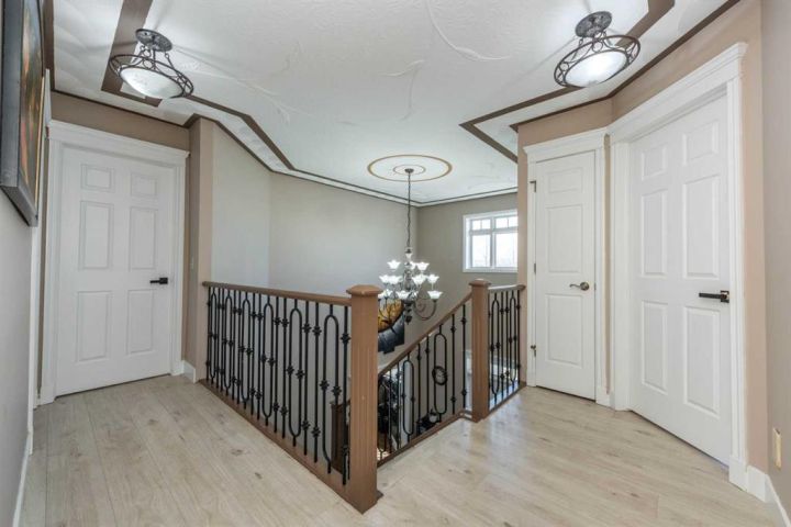 Your dream acreage awaits! Discover this beautifully updated 2-acre property ideally located just minutes from Calgary, Airdrie, Highway 2, and CrossIron Mills. Bring the kids, acreage toys, and RV — there’s room for it all! This stunning two-storey family home with a heated triple car garage offers over 2,611 sq. ft. above grade plus an additional 1,312 sq. ft. of fully developed basement space. Built in 2000 and thoughtfully renovated, this home features a fresh coat of paint, new hardwood flooring, updated lighting, dog fencing, garden for summer vegetables, new kitchen chimney, and new patio cover with glass railing — perfect for relaxing or entertaining outdoors. The gourmet kitchen boasts granite countertops, light maple cabinetry, a large island with breakfast bar and wine rack, and brand-new stainless-steel appliances, including a new fridge, oven, and dishwasher. The laundry room includes a new washer and plenty of storage. The main floor greets you with a grand entryway and wrap-around covered veranda, flowing into a bright breakfast nook and spacious living room divided by a stone-faced three-sided gas fireplace. Double French doors lead to a formal dining room or private office. Upstairs features four spacious bedrooms, including a primary suite with a 6-piece ensuite featuring a corner soaker tub and tiled shower. The main bath includes double sinks, a laundry chute, and a large skylight for natural light. The fully developed basement offers in-floor heating, two additional bedrooms, a 4-piece bath, and large recreation and family room. Recent upgrades include a new in-floor boiler system and oversized hot water tank. Outside, enjoy a massive back deck with new patio cover and glass railing, overlooking a lush meadow surrounded by mature poplars and six fruit trees (plum, cherry, apple, and apricot). Property highlights include an oversized standalone storage shed, ample asphalt parking, and a dedicated RV pad. This property offers the perfect blend of country tranquility and city convenience — ideal for families, hobbyists, or professionals needing extra space for vehicles and equipment. Amazing value — priced to sell, and it won’t last!
