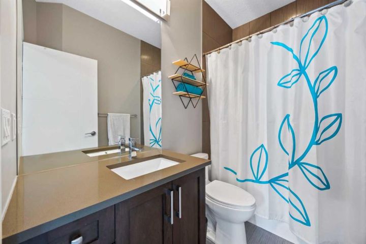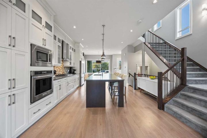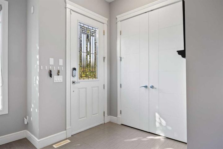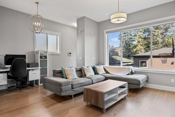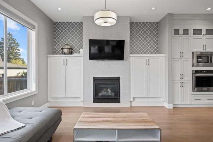 Location perfection — a quiet street, just steps from two schools! Welcome to this luxurious 4-bedroom, 3.5-bath semi-detached home, loaded with high-end upgrades throughout, in the highly sought-after community of Banff Trail. Step inside and be greeted by soaring 10’ ceilings and rich hardwood floors that flow throughout the main level. The open-concept layout is designed for both everyday living and entertaining, featuring a spacious dining area perfect for large gatherings. The chef-inspired kitchen offers upgraded white custom cabinetry, a massive quartz island, and premium finishes that overlook the inviting living room complete with a tile-surround gas fireplace. A stylish 2-piece powder room completes the main floor. Upstairs, skylights flood the stairwell with natural light. The primary retreat boasts dramatic vaulted ceilings, a custom walk-in closet with built-ins, and a spa-like 5-piece ensuite with jetted tub and dual vanities. Two additional bedrooms also feature vaulted ceilings and custom built-in closets, alongside a 4-piece bath and full-size laundry room. The fully developed basement is designed for relaxation and entertainment, showcasing a spacious rec room with built-in speakers, a wet bar, and plenty of room for movie nights. A fourth bedroom with its own built-in closet and a 4-piece bathroom complete the lower level. Additional highlights include central air conditioning, a spacious backyard, and a double detached garage, along with custom built-ins throughout the home for premium storage and organization. Unbeatable location: directly across from St. Pius (catholic) and Capitol Hill schools, with Branton Jr. High just a 5-minute walk and Aberhart High within 15 minutes. You’re also minutes away from North Hill Shopping Centre, SAIT, restaurants, West Confederation Park, splash parks, bike trails, and LRT stations for an easy commute. This home combines luxury, functionality, and an exceptional location — a true gem in Banff Trail.