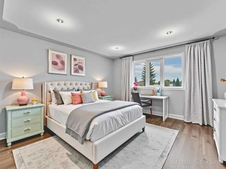 **Welcome Home to Your Family Oasis!** Nestled in a vibrant community, this stunning two-story home is the perfect blend of space, comfort, and modern living. With over 2,400 sq ft of thoughtfully designed living space plus a fully developed basement, this residence is ideal for families seeking room to grow and thrive. Step inside and be greeted by an expansive layout featuring **four generously sized bedrooms**, each offering ample closet space and natural light. The heart of the home boasts a **huge games room** that flows seamlessly into the adjoining family room, where cozy evenings by the fireplace await you. Imagine gathering with loved ones in these inviting spaces—perfect for both entertaining and relaxation. Don’t let appearances fool you; this is not your average home! Recently updated throughout, this home features **real hardwood floors** and elegant tile on the main and upper levels, while new carpeting in the basement adds warmth underfoot. With **two full baths** and **two half baths**, morning routines will be a breeze for everyone in the family. Step outside onto your brand-new rear deck—an ideal spot for summer barbecues or simply enjoying your morning coffee while overlooking your spacious backyard. The double finished detached garage provides plenty of storage or workshop space, complemented by paved off-street parking for added convenience. Located just moments away from shopping centers, public transit options, scenic trails, and lush parks, this property offers not only a beautiful home but also an active lifestyle at your fingertips. Don’t miss out on this exceptional opportunity to own a piece of paradise that truly feels like home! Schedule your private showing today—your dream family sanctuary awaits! Now the boring stuff. The house & garage roofs have a new membrane roof, 2 roof top mounted A/C's, Washer/Dryer wifi enabled, shuffleboard & saw in garage included. The rooms are virtually staged.