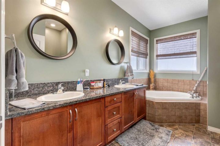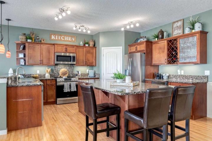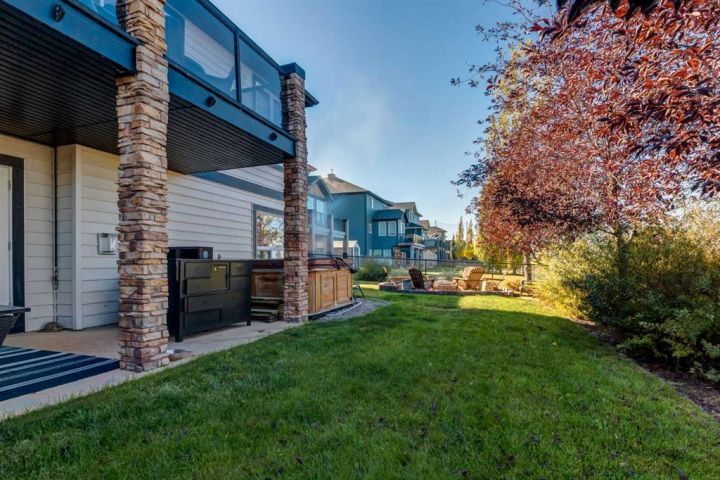WALKOUT BUNGALOW on the GOLF COURSE!!!! Located perfectly on a quiet, family-friendly street and backing onto the Boulder Creek Golf Course, this home has it all. Pull up to this property and notice the beautifully landscaped property and your 3-CAR GARAGE! That pride of ownership carries into the house as you open the front door to stunning views of the golf course. The main level boasts an open concept, 9' ceilings and hardwood floors and a spacious executive kitchen with a large, functional island complete with eating bar for 4, a corner pantry , stainless appliances and lots of functional cabinetry. The living area has large sun-soaked windows and a cozy fireplace perfect for those cold winter nights. The primary suite is spacious and boasts a 5 pc ensuite with granite countertops and a generous walk-in closet. Your main level is finished off with a 2nd Bedroom/Den/Gym, another 4 pc bath, a large mud room and upstairs laundry. The walk-out basement is well-appointed and is the entertainer's dream and perfect for all those family gatherings. Large rec room & TV area, a DREAM BAR/ENTERTAINMENT area, large 3rd & 4th Bedrooms and another triple-sided fireplace. Enjoy your summer nights in the backyard at the firepit or in the hot tub as you stare at the star or watch the golfer walk by. The DREAM TRIPLE GARAGE is heated with EPOXY floors, full dog run, LED exterior lighting. This property is a must-see and perfect place to call home in Langdon!!!!