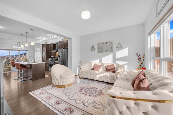 Stunning Modern Home – North-Facing Entrance! Discover your dream home in the vibrant community of Savanna. This beautifully designed property offers everything your family needs featuring 4 spacious bedrooms, 3.5 bathrooms, and a double indoor garage with a large storage room. The extended driveway accommodates up to 4 vehicles and includes convenient back-lane access. Inside, you’ll find an open-concept floor plan that blends style and comfort. The modern kitchen showcases a sleek island design, perfect for cooking and entertaining. The elegant interior gives the entire space a clean, bright, and luxurious feel. Enjoy outdoor living on the oversized balcony, ideal for summer BBQs or relaxing in the fresh air. Upstairs, the primary bedroom offers plenty of space, natural light, and a peaceful view. Located in a quiet, family-friendly area, this home is just minutes away from shopping centers, restaurants, banks, and medical clinics. You’ll love the easy access to major roads while still enjoying the calm of suburban living. This is more than just a house — it’s a modern city home designed for comfort, convenience, and style. Whether you’re an investor or first-time homebuyer, this property offers excellent value, prime location, and great features. Don’t miss out—book your showing today!