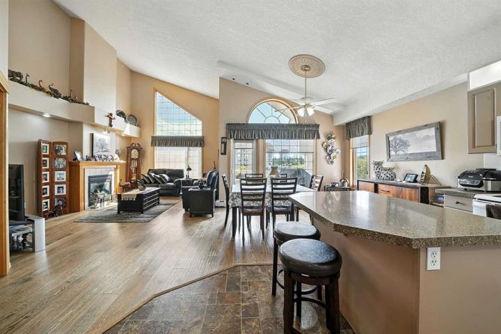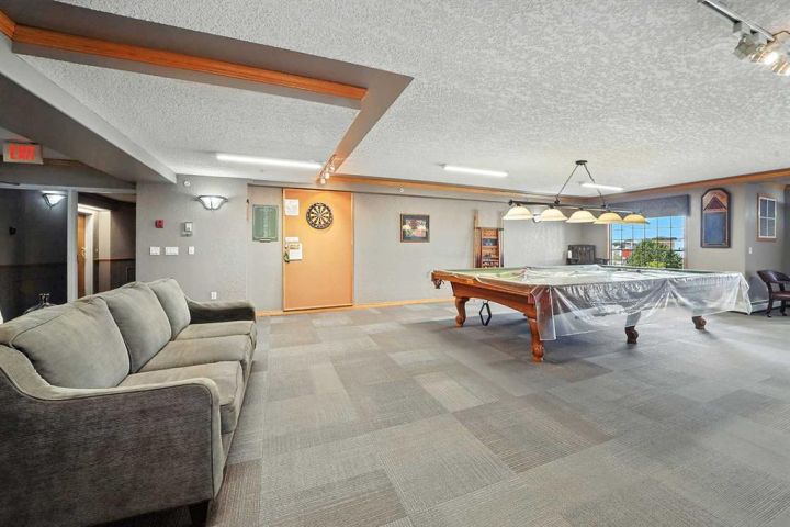 1 Large Bedroom with Ensuite Bath plus 1 Large Den & Second 4-Piece Bathroom! SENIOR 55+ BUILDING WITH LOADS OF AMENITIES! Elegant, Comfortable, and Spacious! These are just a few of the words that describe this exceptional fourth-floor condo located in the highly sought-after Sierra Grande 55+ building in a prime downtown Red Deer location! This stunning home is one of the largest units in the complex, offering an abundance of natural light through striking arched windows, soaring 14' vaulted ceilings, and a bright, open-concept design. The welcoming living room features a beautiful gas fireplace, creating a warm and inviting atmosphere. The spacious primary bedroom impresses with mirrored closets providing excellent storage solutions. The kitchen is designed with both function and style in mind, featuring a generous amount of cabinetry, a large island, pot and pan drawers, and a pantry—perfect for those who love to cook and entertain. From the living area, garden doors lead to a south-facing covered sun deck, ideal for enjoying morning coffee or relaxing throughout the year. This impressive home also offers a newer air conditioning system installed in 2017, a versatile den that can serve as an office, hobby space, or guest area, and a huge primary bedroom with a large 4-piece ensuite bathroom. The in-suite laundry room includes a washer and dryer, ample cabinetry, and a convenient laundry sink. One heated underground parking stall with a private enclosed concrete storage unit located directly in front of it is also included for your comfort and convenience. Sierra Grande provides an outstanding array of amenities designed to enhance your lifestyle, including an indoor pool, exercise room, games room, media room, woodworking shop with industrial tools, craft room, underground parking, car wash and vacuum bay, party and banquet room, mailroom, and guest suites for visitors. Small pets may be permitted with board approval. The location is ideal—within walking distance of grocery stores, pharmacies, medical services, shopping, the curling rink, arena, the Golden Circle, parks, and walking trails. Condo fee includes high-speed Internet, cable TV, heat, water, sewer, garbage, exterior maintenance, ground maintenance, landscaping & snow removal, building insurance, and reserve fund contributions. This fourth-floor unit offers the perfect combination of space, comfort, and community in the heart of Red Deer. A must-see property for those looking to enjoy an elegant and convenient lifestyle.