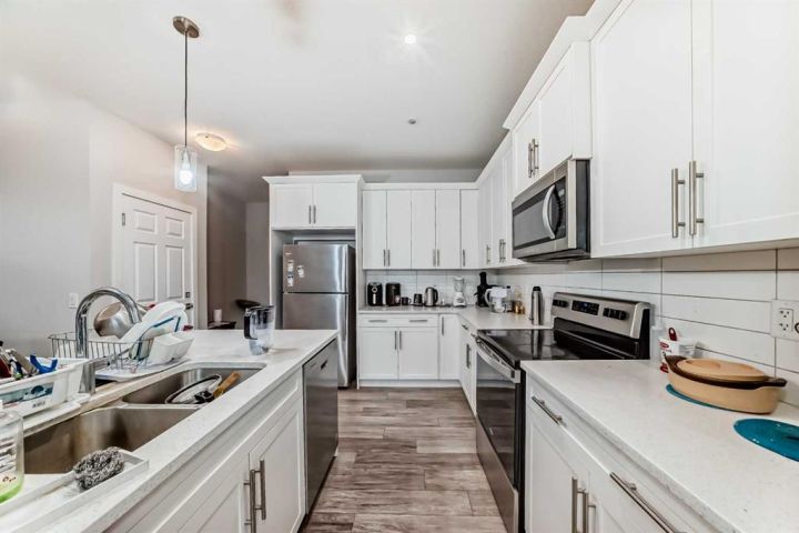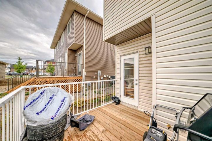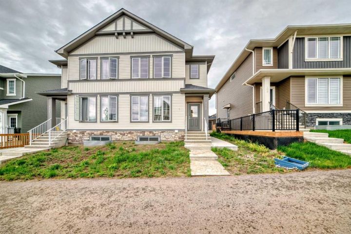 2023 Build | Legal 2-Bedroom Suite | Bonus Room | Deck with BBQ Gas Line. Attention investors! This 2023-built, income-generating property offers a rare opportunity to acquire a spacious home with a legal basement suite in Calgary’s growing northwest community of Ambleton/Moraine. The main unit features 4 bedrooms and 3 full bathrooms, including a main floor bedroom with full bath, plus a bonus room upstairs perfect for families or added tenant appeal. The spacious primary suite includes a walk-in closet and ensuite, with two additional bedrooms and a third full bath. A rear deck with gas line for BBQ provides great outdoor space for upper-level tenants. Inside, the legal basement suite includes 2 bedrooms, 1 bathroom, separate laundry, and a private entrance, finished with durable luxury vinyl plank flooring on both levels. This is a turnkey investment which will provide monthly rental income and equity building for years to come. Ask about the identical neighboring unit at 112 Ambleton Street NW. Fully leased! A rare chance to acquire both sides of a legal 4-unit setup.