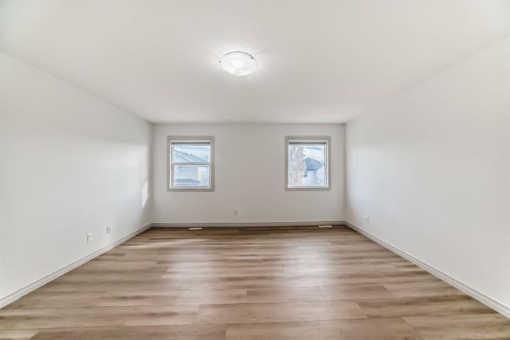 Welcome to this elegant 4 bedroom house in the much sought after, family friendly community of Evanston. As you Walk into the spacious entrance you immediately come into a formal living room, with office to the left, half bath, mudroom with laundry and coat closet. Proceed further and you are greeted with an open concept family room area over looking the kitchen and dining. Back door leads to a huge deck that flows into the privacy of a fenced yard for those nice BBQ days with the family. Upstairs you will find 3 good size bedrooms with a 4pc bathroom. Take the hallway and you walk into a huge primary bedroom with a 5pc ensuite bathroom. The newly installed hardwood floor all through the upper level and stairs makes upstairs a more appealing sanctuary. Basement is fully finished walk-up with separate entrance. It boasts huge Rec room that flows into a kitchen and eating area; 2 good size bedrooms, full 3pc bathroom with separate laundry. This home is nestled in a beautiful section of Evanston - the aerial view says it all. Close to schools, shopping, playgrounds, park and easy access to transit system. You cannot afford to miss this one. Call now for your private viewing.