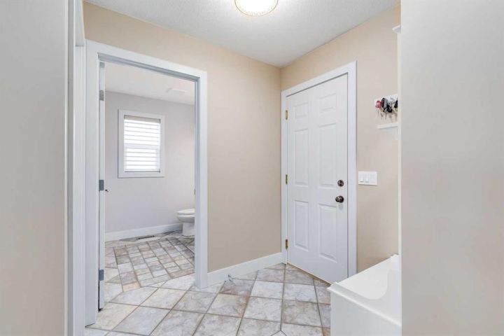 Welcome to 1719 Woodside Blvd NW, a beautifully renovated two-storey home backing directly onto the Woodside Golf Course — offering the perfect balance of modern updates, privacy, and mature landscaping. Every renovation and upgrade has been professionally completed, making this home feel brand new while preserving the charm of one of Airdrie’s most established communities. Step inside and be greeted by a grand curved staircase, a stunning architectural centerpiece that sets the tone for the quality and design found throughout the home. The foyer features a built-in bench, a walk-in closet, creating a welcoming and practical entryway. The main floor showcases a designer kitchen with two-tone cabinetry, quartz countertops, cabinets to the ceiling with crown molding, a glass tile backsplash, and a massive island perfect for family gatherings. A walk-in pantry adds convenience and storage, while the large dining area, surrounded by windows, offers picturesque views of the golf course — the perfect backdrop for family meals or entertaining. The living room features a cozy gas fireplace (recently serviced and cleaned) and big, bright windows that fill the space with natural light and frame the serene outdoor scenery. Throughout the home, you’ll find updated light fixtures, knockdown ceilings, new interior doors, trim, and baseboards, creating a cohesive, elevated look. The layout includes a spacious mudroom, half bath with laundry, and ample storage throughout — perfect for busy family living. Upstairs, you’ll find three generous bedrooms, including a primary suite designed for relaxation with a large walk-in closet and a luxurious ensuite featuring dual shower heads, gorgeous tile, and quartz finishes. The main 4-piece bathroom includes an extended vanity for extra counter space, generous storage, and a second linen closet. The fully finished basement expands your living space with a fourth bedroom, office nook, wet bar, spacious family room, and a beautifully updated full bathroom with a walk-in tiled shower. Step outside to the elevated backyard deck, offering multiple seating areas, a fire table, and unobstructed golf course views — an ideal setting for entertaining or quiet evenings surrounded by mature trees. The exterior siding and battens have been updated for timeless curb appeal, and both the house and garage feature upgraded blown-in attic insulation, improving comfort and energy efficiency. Additional upgrades include knockdown ceilings, modern lighting, and recently serviced mechanical systems, ensuring peace of mind and long-term comfort. With its combination of high-end renovations, thoughtful design, and unbeatable location, 1719 Woodside Blvd NW delivers the rare combination of modern luxury, peaceful surroundings, and community connection — all in one of Airdrie’s most loved neighborhoods.