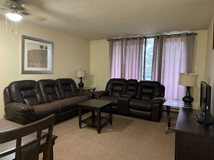 Welcome to this charming and well-maintained one-bedroom, one-bathroom condo — perfect for first-time buyers, downsizers, or investors! Step into a bright and functional kitchen featuring plenty of newer cabinets, storage, durable countertops, and classic white appliances. The adjoining living area offers a cozy space to relax, with large windows that fill the room with natural light. Neutral tones and comfortable furnishings make it easy to envision your own personal touches. The spacious bedroom provides ample room for a queen bed, complete with matching furniture and a warm, inviting atmosphere. The full bathroom and in-suite storage add convenience and practicality. Enjoy the comfort of carpeted flooring throughout the main living areas, with durable lino in the kitchen, entrance, storage and bathroom for easy maintenance. Located in a well-managed building, this condo is close to shopping, dining, parks, and public transit — offering both comfort and convenience. Whether you’re looking for a move-in-ready home or a solid rental investment, this condo checks all the boxes!