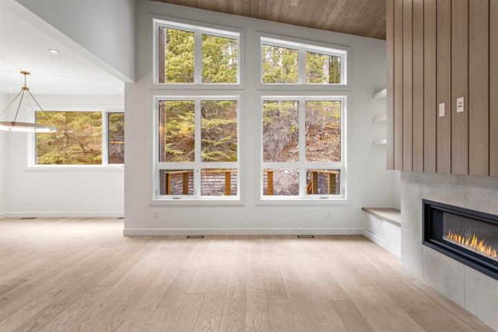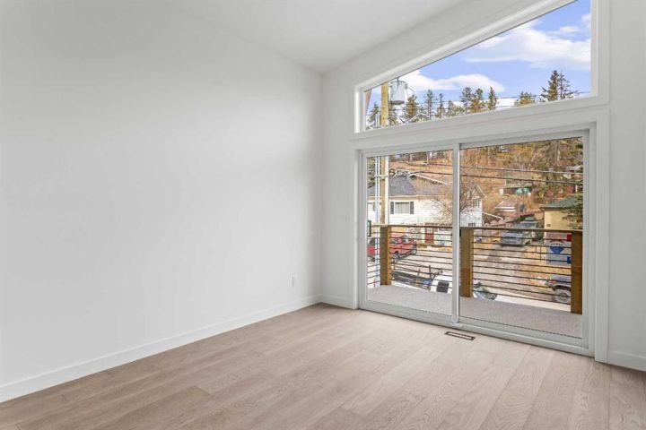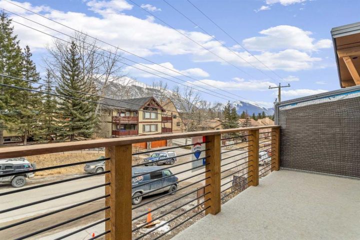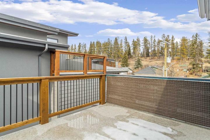 This BRAND NEW, 2700sf 4 bedroom PLUS A DEN duplex effortlessly combines elegance, practicality, and the beauty of nature! The gourmet kitchen, with custom cabinetry, Fulgor Milano appliances, and sprawling quartz countertops is a dream for any chef. While the lower-level rec room & built-in storage solutions ensure entertaining & everyday living are stylish & convenient. Gorgeous hardwood floors & a vaulted wood ceiling add warmth & charm, framing the serene privacy in the treed backyard with no neighbors. PLUS enjoy 3 additional outdoor living spaces included a covered rear porch, 3rd floor view deck, and private balcony off the primary bedroom. Situated on a quiet street just minutes from downtown Canmore, this home offers unparalleled access to outdoor adventures like the Canmore Nordic Center and Bow River trails, all while providing a serene space to unwind and enjoy the surrounding tranquility. Don’t miss the chance to make this extraordinary lifestyle your own!