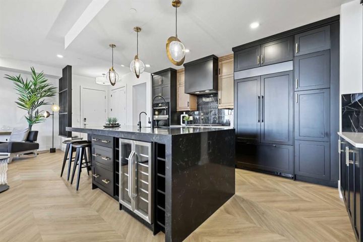 The Streams of Lake Mahogany present an elevated single-level lifestyle in our stunning Reflection Estate homes situated on Lake Side on Mahogany Lake. Selected carefully from the best-selling renowned Westman Village Community, you will discover THE CASCADE, a home created for the most discerning buyer, offering a curated space to enjoy and appreciate the hand-selected luxury of a resort-style feeling while providing you a maintenance-free opportunity to lock and leave. Step into an expansive 1700+ builders sq ft stunning home overlooking a gorgeous greenspace adjacent to Mahogany Lake featuring a thoughtfully designed open floor plan inviting an abundance of natural daylight with soaring 10-foot ceilings and oversized windows. The centralized living area, ideal for entertaining, offers a Built-in ULTRA JennAir appliance package with French Door Refrigerator and internal ice maker and water dispenser, a 36" gas cooktop, a dishwasher with a stainless steel interior, and a 30-inch wall oven with microwave; all nicely complimented by the an Elevated Luxe Noir Color Palette. All are highlighted with stunning Quartz countertops. You will enjoy two beautiful bedrooms, a generous central living area, with the Primary Suite featuring a spacious 5-piece oasis-like ensuite with dual vanities, a large soaker tub, a stand-alone shower, and a generous walk-in closet. The Primary Suite and main living area step out to a 39ftx15ft terrace with a lovely view of the greenspace. Yours to enjoy and soak in every single day. To complete the package, you have a sizeable office area adjacent to the spacious laundry room and a double attached heated garage with a full-width driveway. Custom additions to this home include under cabinet lighting, upgraded Moen black plumbing fixture package, air conditioning, convenient laundry room with folding table, stunning electric fireplace and expansive covered terrace with access from the Living Room, Dining Room and Owners Suite. Upgraded built-in cabinet package with spice tray, utensil tray and recycling pull-out bins. Upgraded with a coffee bar. Jayman's standard inclusions feature their trademark Core Performance, which includes Solar Panels, Built Green Canada Standard with an Energuide rating, UVC Ultraviolet light air purification system, high-efficiency heat pump for air conditioning, forced air fan coil hydronic heating system, active heat recovery ventilator, Navien-brand tankless hot water heater, triple pane windows and smart home technology solutions. Enjoy Calgary’s largest lake, with 21 more acres of beach area than any other community.