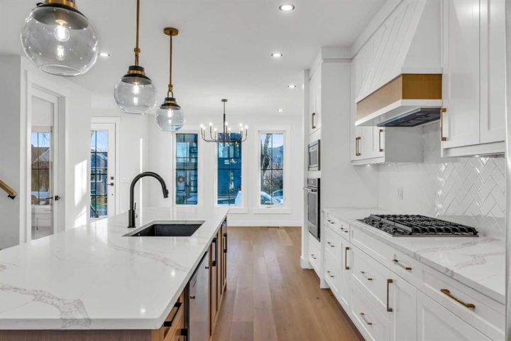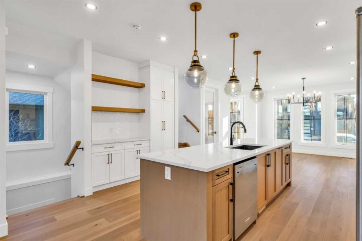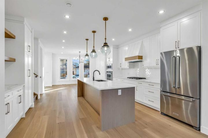 ***OPEN HOUSE FRIDAY NOV 7th 4:30-8:00PM*** Located on a quiet, tree-lined street in Mount Pleasant, this brand-new home combines sophisticated craftsmanship with a functional family-friendly layout. The modern HARDIE BOARD exterior is paired with a SOUTH-FACING FRONT PATIO encouraging peaceful morning coffees. Step inside to a bright front foyer with CUSTOM MILLWORK BUILT-INS leading to a formal beautiful dining room accented by a WOOD FEATURE WALL that sets the tone for the home’s elegant design. The GOURMET KITCHEN is a chef’s dream with a galley-style layout that encourages culinary creativity. High-end KITCHENAID APPLIANCES include a GAS COOKTOP and BUILT-IN WALL OVEN and MICROWAVE, complemented by STONE COUNTERS, UNDER-CABINET LIGHTING, a GARBAGE PULLOUT, and an OVERSIZED CRUSHED GRANITE SINK. A walk-through area off the kitchen offers both a WALL PANTRY with APPLIANCE COUNTER and a separate ENCLOSED ROOM that can serve as a PANTRY or MAIN FLOOR OFFICE. The open-concept living room is warm and welcoming with CUSTOM BUILT-IN SHELVING and a GAS FIREPLACE overlooking the BACKYARD—perfect for quiet evenings or gatherings with friends. A MUDROOM with abundant STORAGE and a tucked-away POWDER ROOM with a WATERFALL-EDGE VANITY complete the main level. A GLASS-RAILED staircase with HARDWOOD TREADS leads to the UPPER LEVEL where you’ll find HARDWOOD FLOORING throughout. A BONUS ROOM with a WOOD FEATURE WALL creates separation between the PRIMARY and SECONDARY BEDROOMS for enhanced privacy. The PRIMARY SUITE is a true retreat with a COFFERED CEILING, LARGE WALK-IN CLOSET, and a LUXURIOUS ENSUITE featuring a STEAM SHOWER, FREE-STANDING TUB, and DUAL VANITY. Two spacious additional bedrooms, a 4-piece main bath, and a convenient LAUNDRY ROOM complete this level. The FULLY DEVELOPED BASEMENT continues the home’s elevated design with a WET BAR and BEVERAGE CENTER for easy entertaining. The REC ROOM features ENTERTAINMENT BUILT-INS and ample space for relaxation or family movie nights. There’s a FOURTH BEDROOM with LARGE WALK-IN CLOSET, a 4-PIECE BATHROOM, and an ENCLOSED FLEX ROOM ideal for a FIFTH BEDROOM, GYM, or HOME OFFICE. Enjoy the PRIVATE BACK YARD with EXTENDED GREEN SPACE for kids and pets large patio area for barbeques and unwinding. Additional features include ROUGH-IN FOR AIR CONDITIONING, a DOUBLE DETACHED GARAGE with 8-FOOT DOOR, EV CHARGER READY OUTLET, and a PAVED BACK LANE. This home offers an exceptional blend of modern luxury and timeless craftsmanship—all in a walkable inner-city location close to CONFEDERATION PARK, SAIT, and the restaurants and cafés along 19 Street NW. A refined residence for those who value quality, design, and comfort in equal measure.