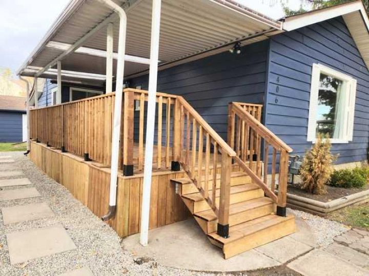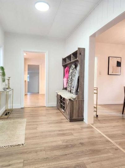 Welcome to this beautifully updated four-bedroom home, offering over 2500 hundred square feet of living space. The main level combines comfort and style, featuring two spacious bedrooms, an upgraded, modern bathroom, a large dining room ,and a brand-new kitchen. The kitchen is beautifully lit by two large windows and is equipped with sleek countertops, ample counter space, brand new cabinets, upgraded appliances, as well as a walk-in pantry, making it perfect for your culinary adventures. The main level also offers a large living room with a grand bay window, bringing in even more natural light. Additionally, there is the convenience of upstairs laundry. Downstairs, you'll find two comfortable bedrooms, a stylish renovated bathroom, and a generous open area that can be easily serve as a cozy TV room, games area, or versatile bonus space. The basement also offers incredible flexibility with rough-plumbing and electrical for a future kitchen and laundry setup- making it ideal for a secondary suite, mother-in-law suite. A secondary suite would be subject to approval and permitting by the city/municipality. Outside, you'll find an attached, covered 300-square deck and oversized double-car garage with plenty of room for a workspace and extra storage. Located in a quiet neighborhood, this home blends timeless charm with modern conveniences. Call your Realtor to show.