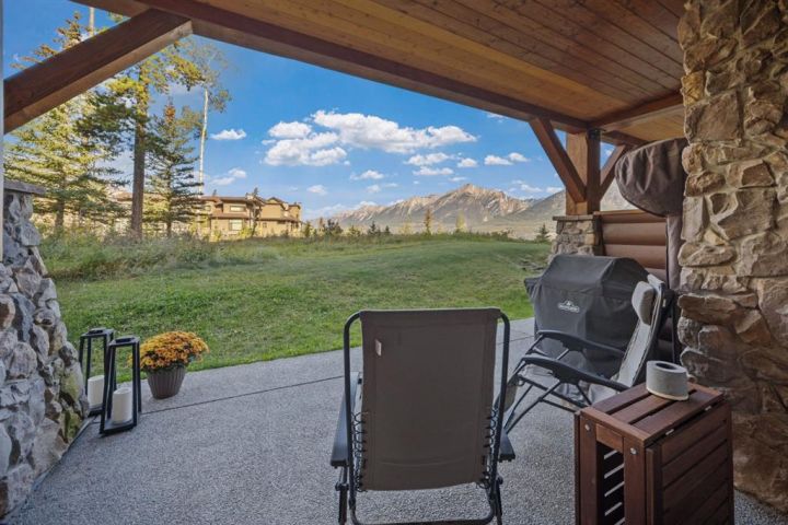 Positioned in the serene southwest corner of Trailside Lodges, this true two-bedroom residence captures the essence of refined mountain living. Thoughtfully updated and beautifully maintained, it offers an exceptional sense of comfort and connection to nature. Each bedroom welcomes soft natural light through full windows, creating a warm and inviting ambiance that shifts gently with the day. The open-concept living area transitions effortlessly to a west facing walk-out patio—an intimate outdoor extension of the home that invites quiet mornings with coffee and evenings bathed in alpenglow. From this private vantage point, panoramic views unfold westward across the Bow Valley toward the Fairholme Range and Mount Lawrence Grassi, a scene as dynamic as the seasons themselves. Inside, the interiors blend contemporary touches with the timeless character of a mountain retreat. The kitchen anchors the home with a seamless flow to the living and dining spaces, perfect for gathering after a day spent hiking or skiing. A stone fireplace, refreshed flooring, and curated design infuse the space with understated elegance. Set within the well-established Three Sisters community, residents of Trailside Lodges enjoy exclusive access to the Owners Clubhouse—a true extension of home featuring a pool, hot tub, fitness centre, theatre room, and lounge. It’s a place where leisure and lifestyle coexist effortlessly. Beyond the doorstep, everyday conveniences continue to evolve. The upcoming Gateway Commercial District, only a short walk away, will bring a grocery store and boutique shops within easy reach. Nearby, the community park offers a disc golf course, playground, and dog park—amenities that complement the peaceful rhythm of this corner of Canmore. Whether envisioned as a full-time sanctuary or a lock-and-leave escape, this ground-floor retreat embodies tranquility, modern comfort, and an unbroken connection to the surrounding peaks—a home where the beauty of the Rockies truly becomes part of everyday life.