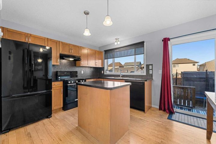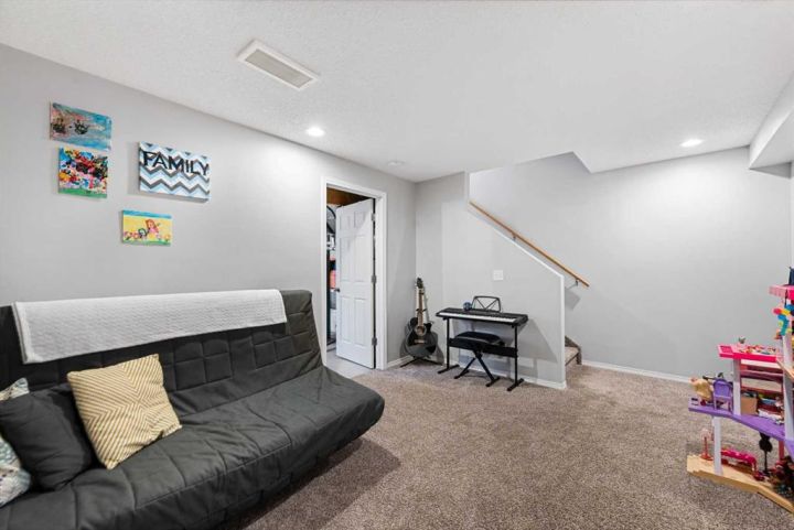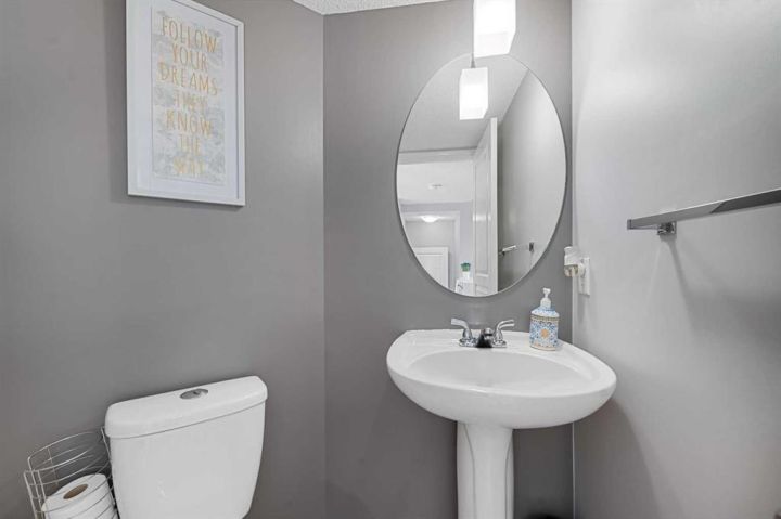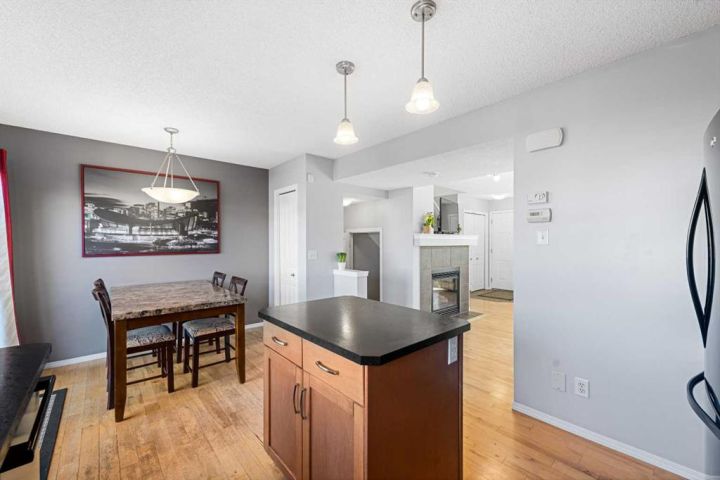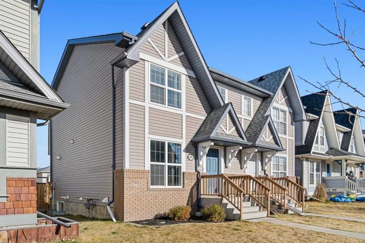 Welcome to 208 Elgin Meadows View! This cozy 2-storey semi-detached duplex offers the perfect blend of comfort, style, and functionality. The main floor features an open-concept layout with a spacious kitchen that includes a gas range and a new dishwasher (2022). The bright dining nook flows into a cozy living room filled with natural light and anchored by a gas fireplace — the perfect spot to enjoy hot chocolate on a winter evening. A convenient half bath completes this level. Upstairs, you’ll find three comfortable bedrooms. The primary suite includes a private 3-piece ensuite, while two additional bedrooms share a 4-piece bathroom. The basement provides even more living space with a versatile media or bonus room — ideal for movie nights or family fun. Enjoy year-round comfort with central air conditioning. Recent updates include new front windows (2023), a hail-rated roof (2024), a new hot water tank (2024), and a new ceiling fan in the primary bedroom (2025). All of this within close proximity to Grocery stores, cafes, parks and schools. This home has been well-maintained and is move-in ready. Book your viewing today before it's gone.